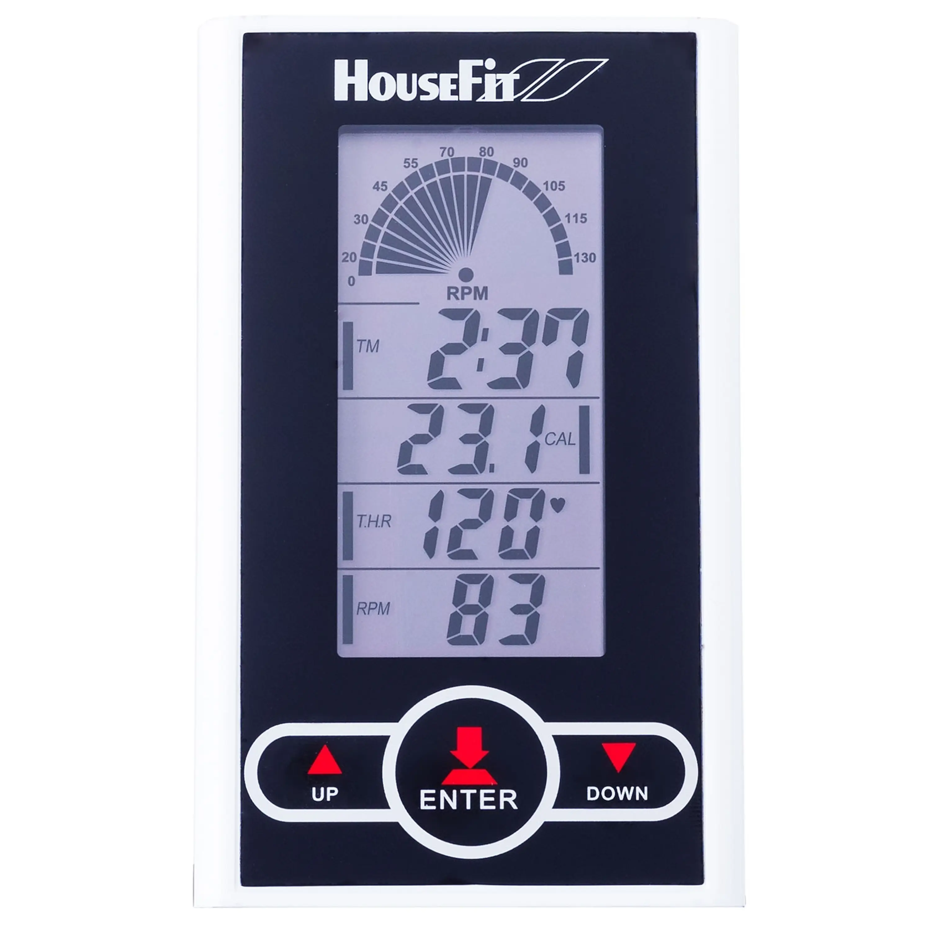 Cyklotrenažér má prehľadný LCD displej, ktorý vyobrazuje základné parametre ako je čas, aktuálna rýchlosť, otáčky RPM, prejdená vzdialenosť, spálené kalórie a hodnotu tepovej frekvencie.