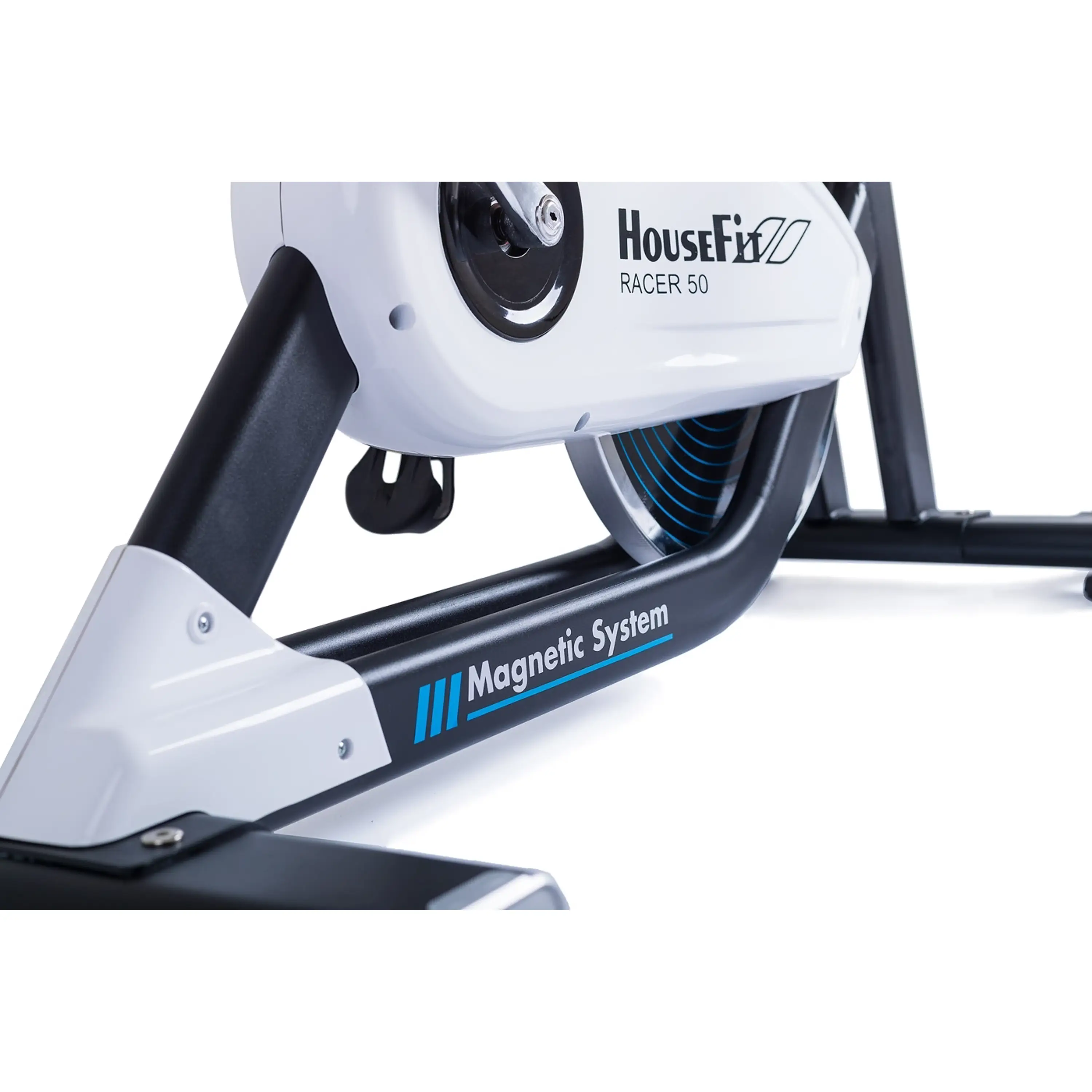 HOUSEFIT RACER 50 má magnetický brzdný systém, ktorý je ovládaný manuálnym otočným regulátorom s dostatočnou variabilitou odporu. Vďaka zotrvačníku s hmotnosťou 14 kg a modernej magnetickej brzde má HOUSEFIT RACER 50 komfortný, plynulý a úplne tichý chod aj pri náročnom tréningu.