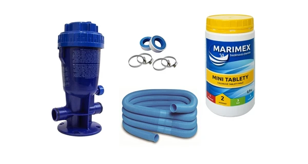 Výhodná sada dávkovača chlóru a príslušenstva pre jeho ľahké sprevádzkovanie. V sade získate všetko potrebné - hadice a inštalačné pásky na prepojenie a chlórové tablety pre prvé naplnenie dávkovača.