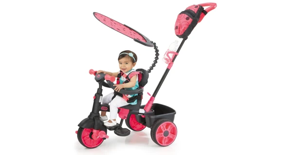 Trojkolka je vybavená päťbodovým bezpečnostným pásom , nastaviteľnou a odnímateľnou strieškou , protišmykovými pedálmi, držiakom na pitie a extra veľkým úschovným priestorom. Na výsuvnej tyči je primontované vrecúško, do ktorého si rodičia môžu odložiť predmety, ktoré chcú mať stále po ruke .