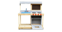 Balenie obsahuje: kuchynku vrátane sporáku, chladničky, práčky, kávovaru, drez z batériou a odkvapkávačom a 26 ks príslušenstva.