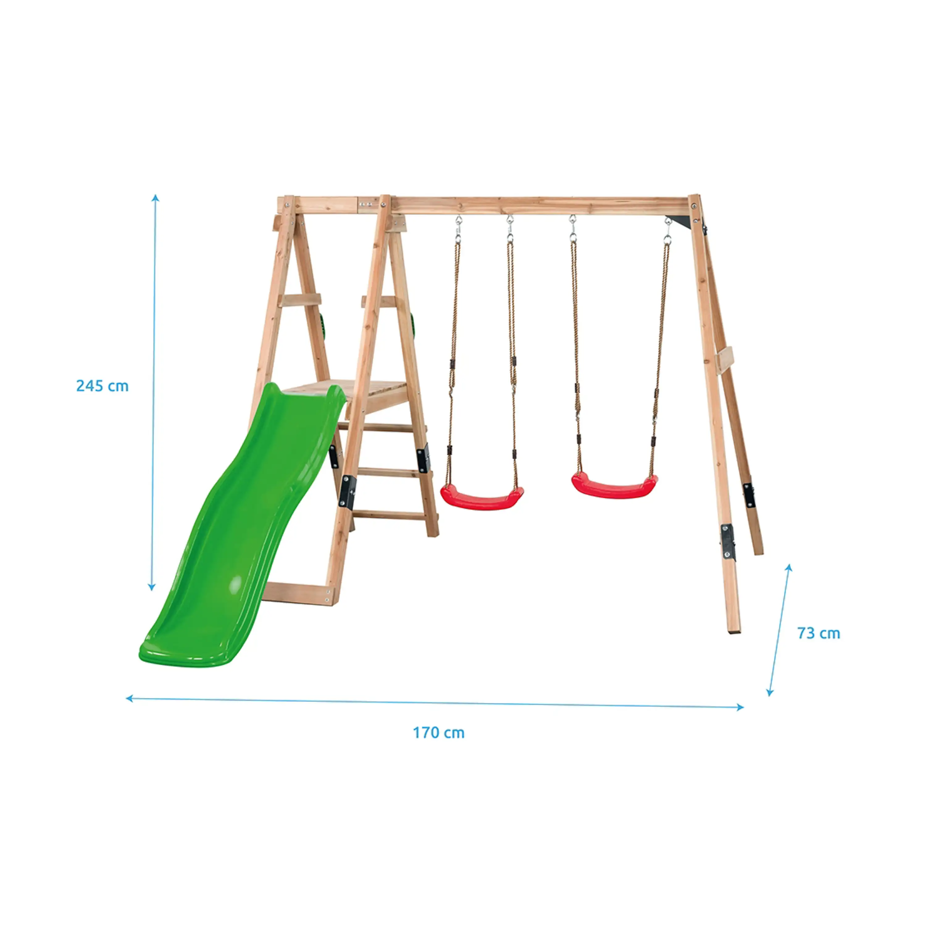 Kvalitné materiályVšetky komponenty sú vyrobené z robustného plastu, odolného kovu a borovicového dreva, ktoré je povrchovo ošetrené proti nepriaznivým vplyvom počasia. |