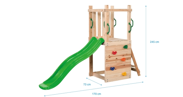 Kvalitné materiályVšetky komponenty sú vyrobené z robustného plastu, odolného kovu a borovicového dreva, ktoré je povrchovo ošetrené proti nepriaznivým vplyvom počasia. |