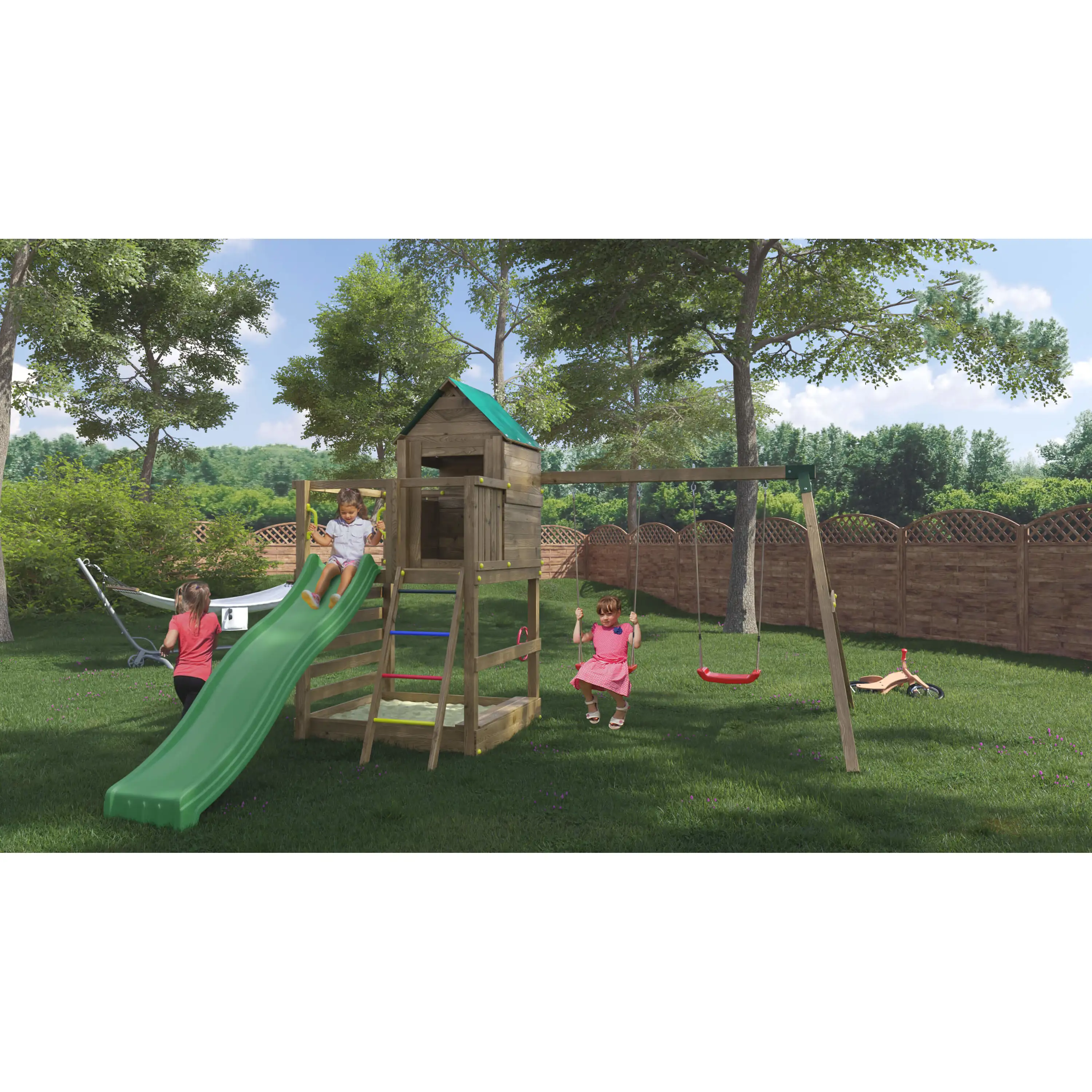Kvalitné materiályVšetky komponenty sú vyrobené z robustného plastu, odolného kovu a borovicového dreva, ktoré je povrchovo ošetrené proti nepriaznivým vplyvom počasia. |
