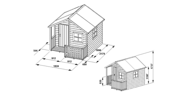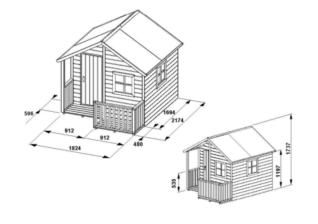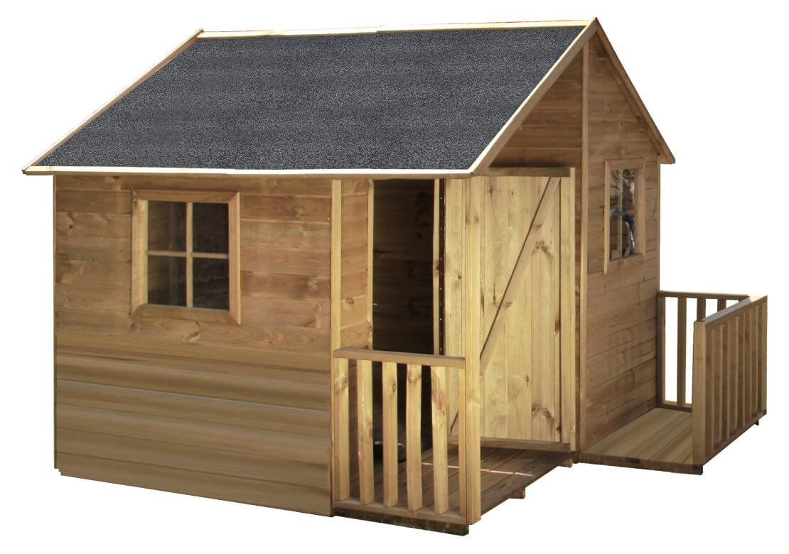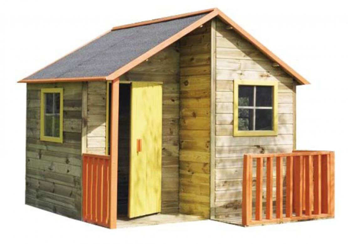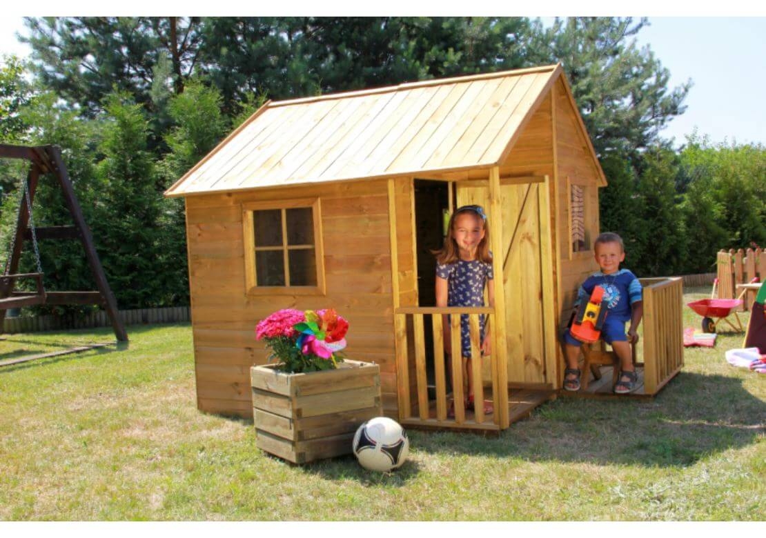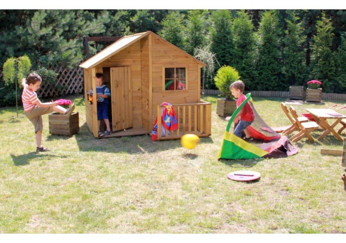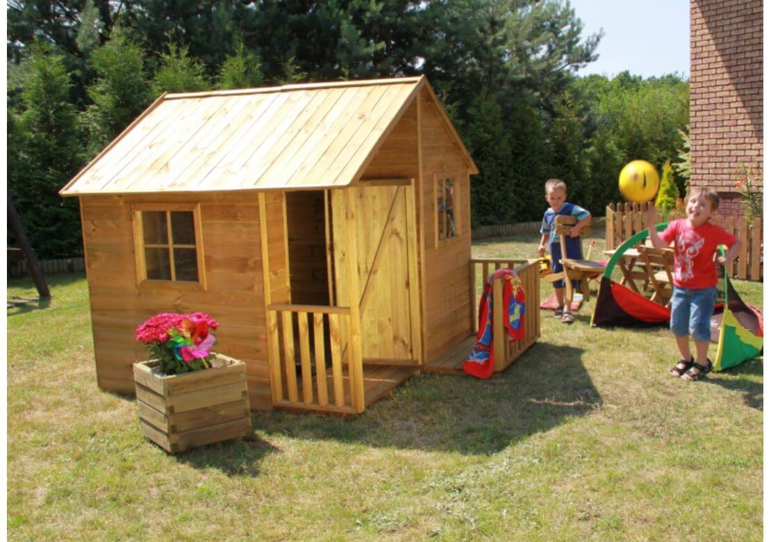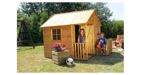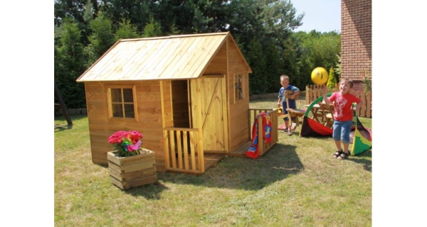Detský drevený domček Chalupa je vyrobený z borovice. Disponuje podlahou a strechou. Strecha je chránená bitumenovým pásom. Drevo je tlakovo impregnované. Domček je určený pre vonkajšie použitie.