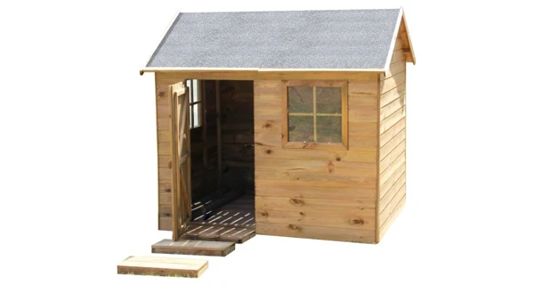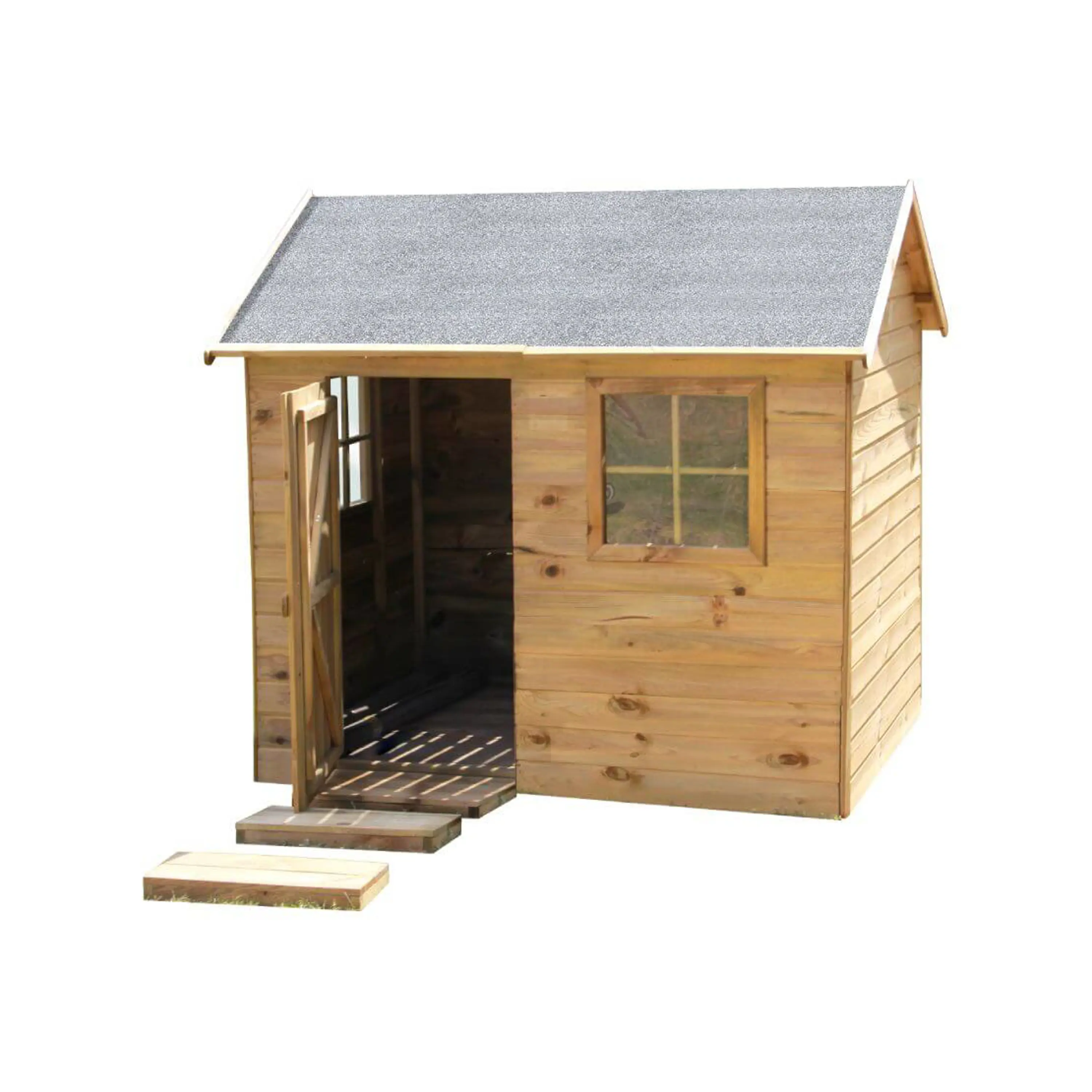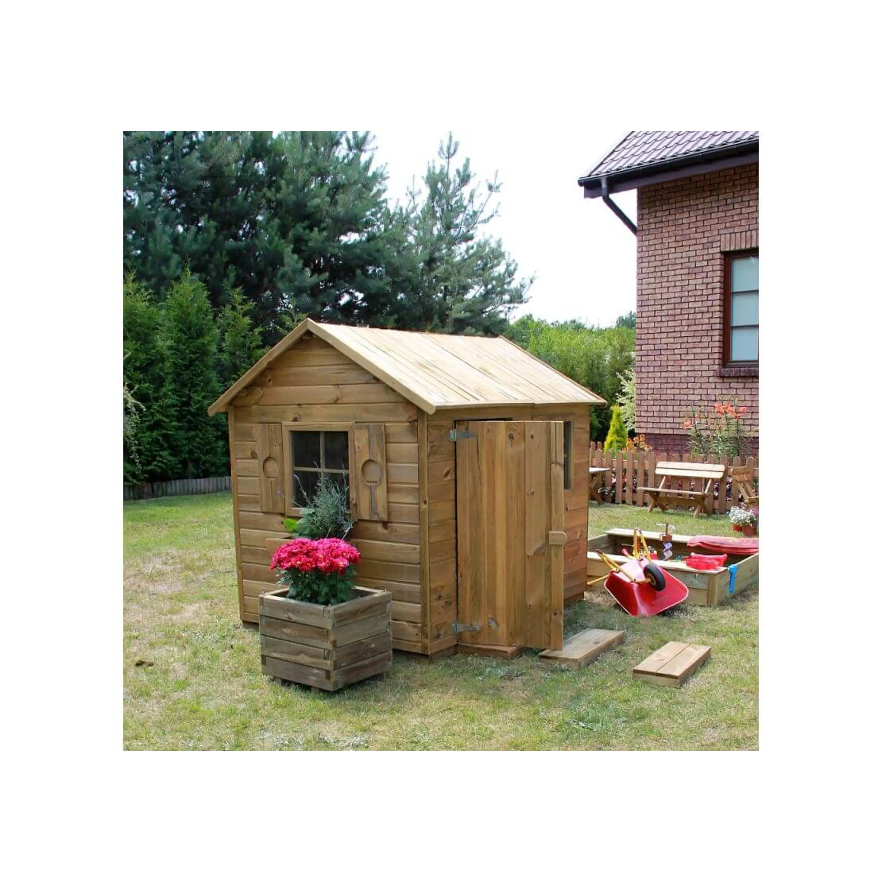 Detský drevený domček Chata z borovice vrátane podlahy. Strecha je chránená bitúmenovým pásom. Ďalšou výhodou je, že je drevo tlakovo impregnované. Domček je určený pre vonkajšie použitie.