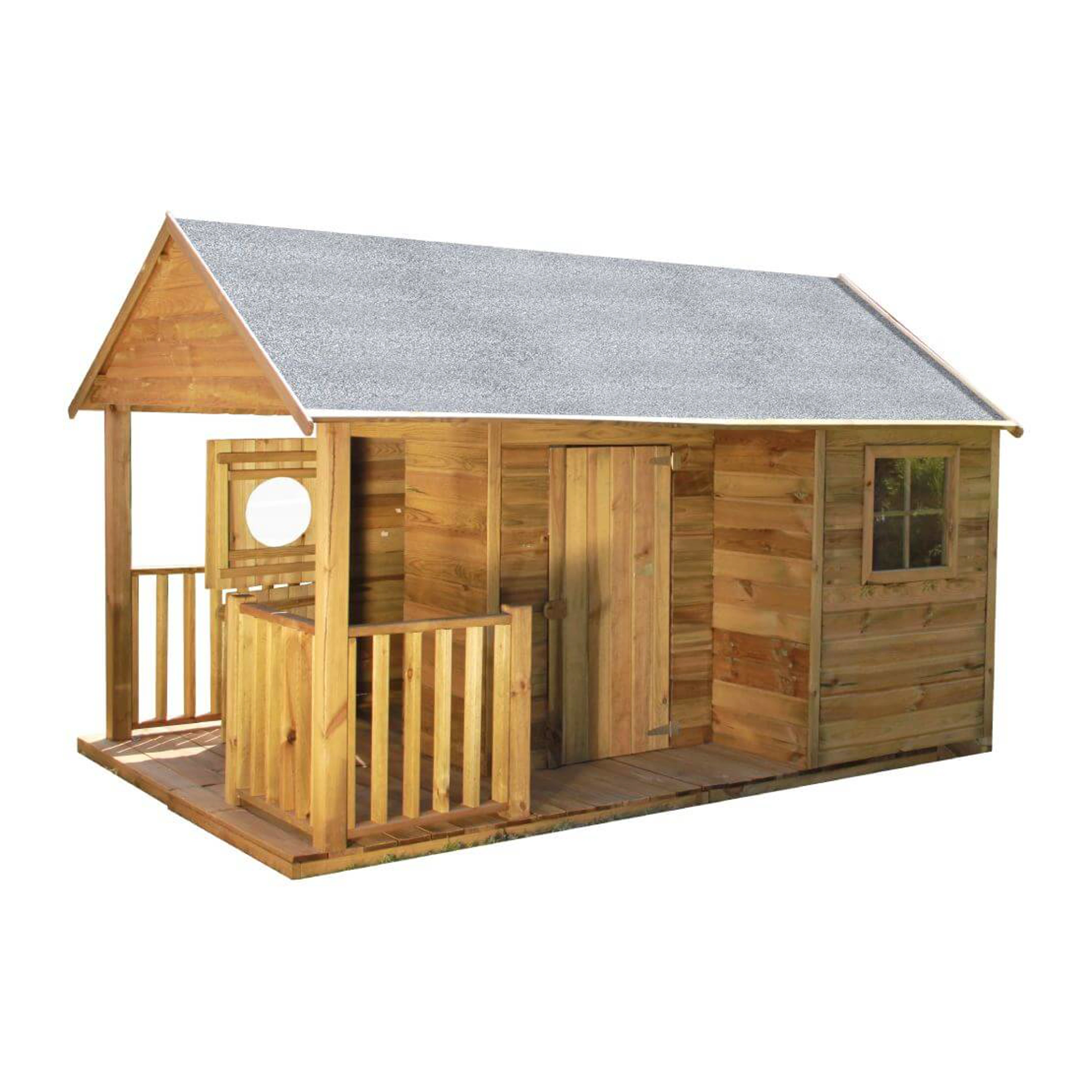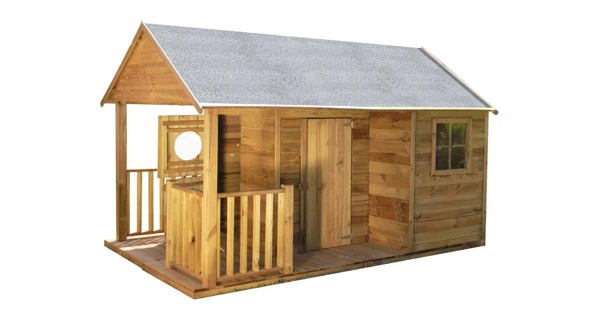 Detský drevený domček Farma má chránenú strechu bitúmenovým pásom. Domček je vyrobený z borovice a drevo je tlakovo impregnované. Vo výbave je aj podlaha. Domček je určený pre vonkajšie použitie.