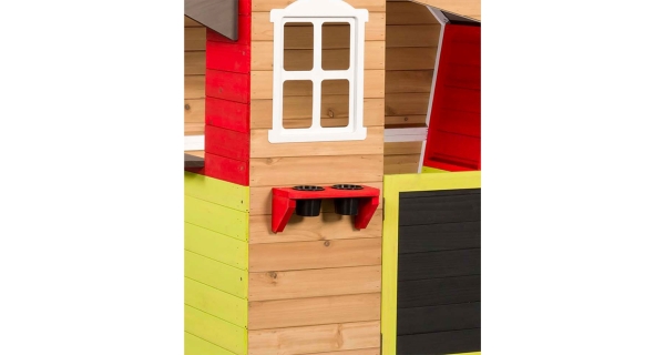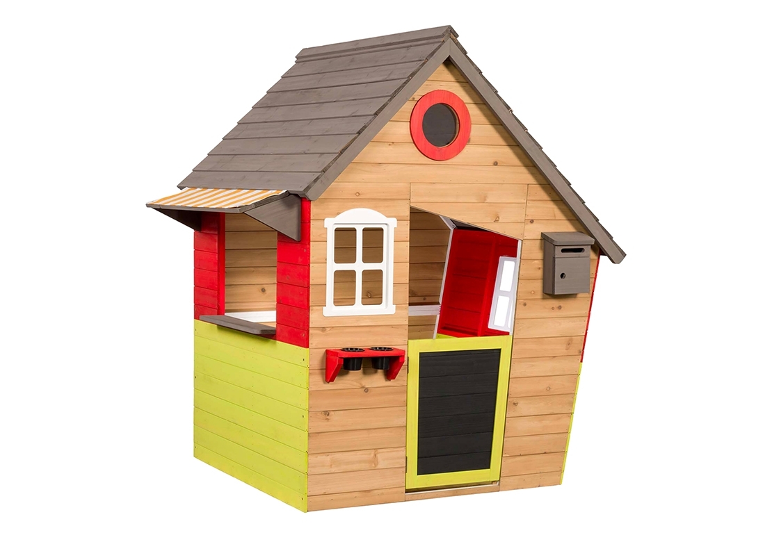 Drevený domček Rozprávka má dvere "lietačky" a tri okná bez okeníc. Drevo je ošetrené ochranným náterom a nevyžaduje žiadnu ďalšiu úpravu. Domček nemá podlahu.