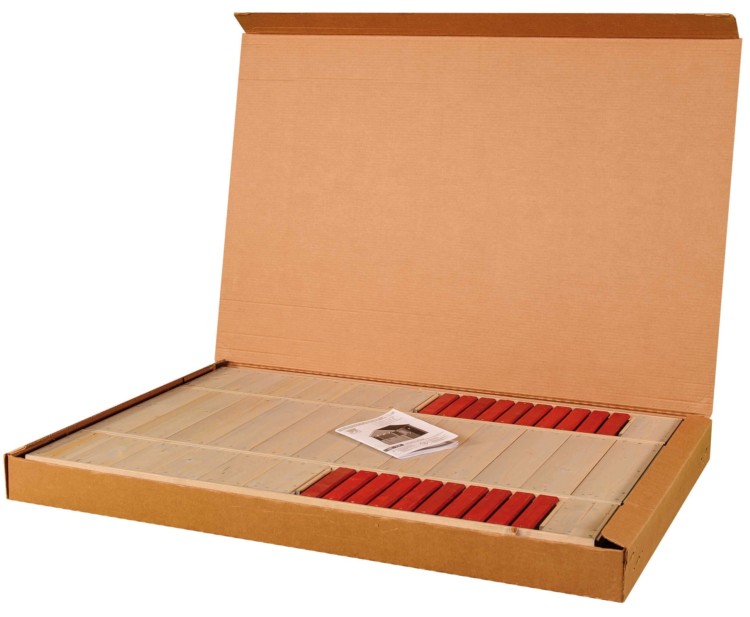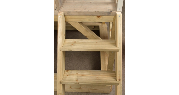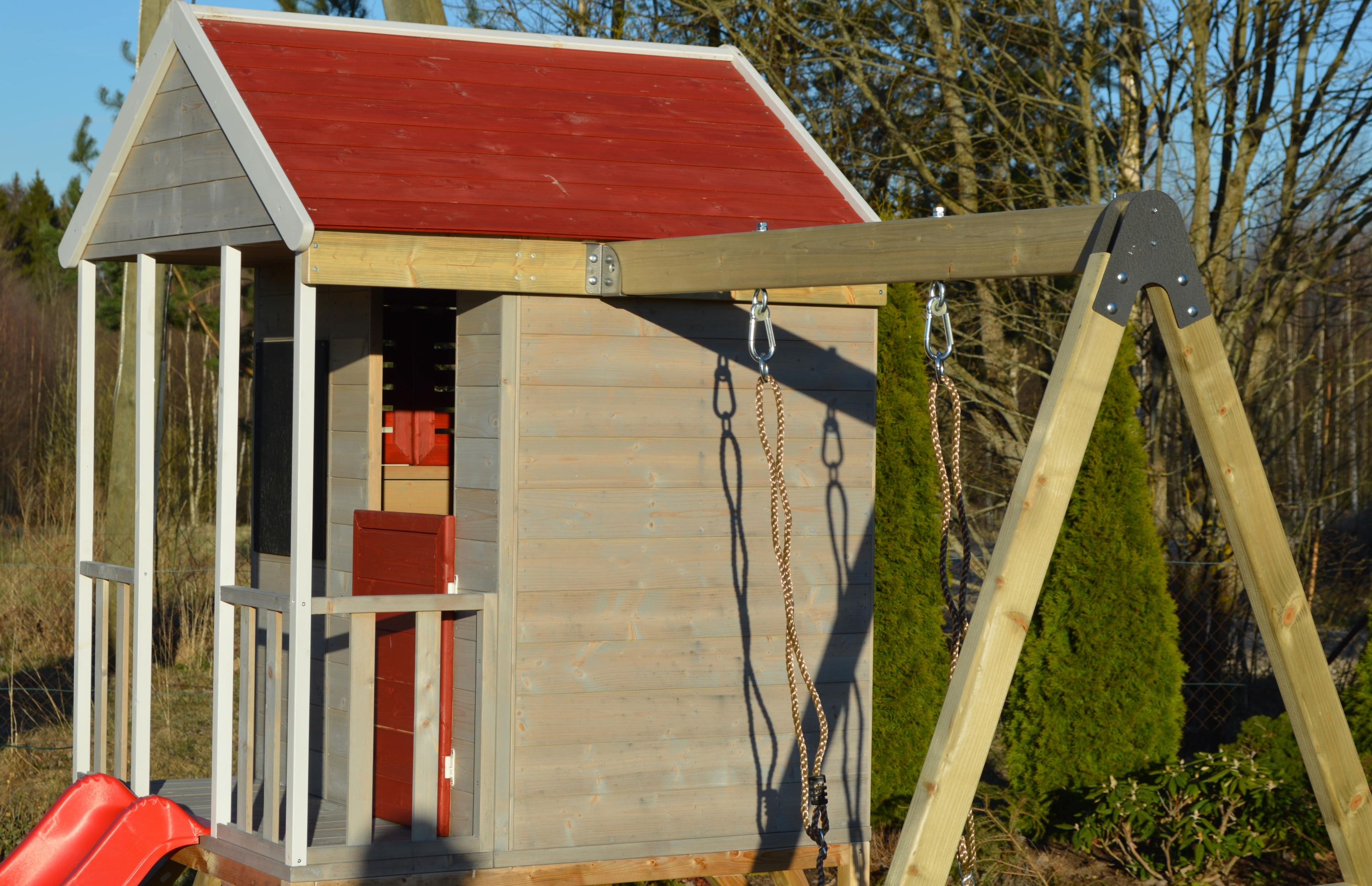 Domček na hranie sa dodáva v rozloženom stave z prefabrikovaných dielov vrátane spojovacieho materiálu. Celé steny a podlaha, ktoré je potrebné len priskrutkovať. Iba strecha je zostavená z jednotlivých dosiek, ktoré do seba zapadajú. Plošina a hojdačka sa dodávajú aj v rozloženom stave (jednotlivé nosníky). Drevo je povrchovo upravené ochranným náterom.
