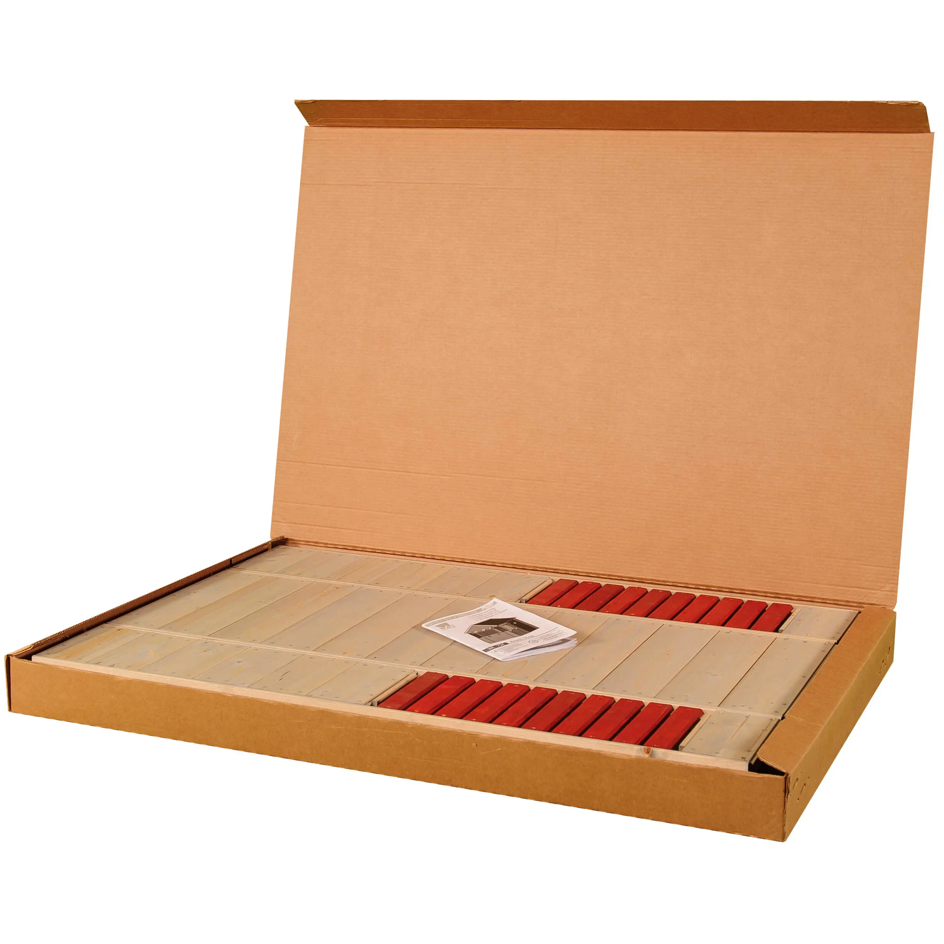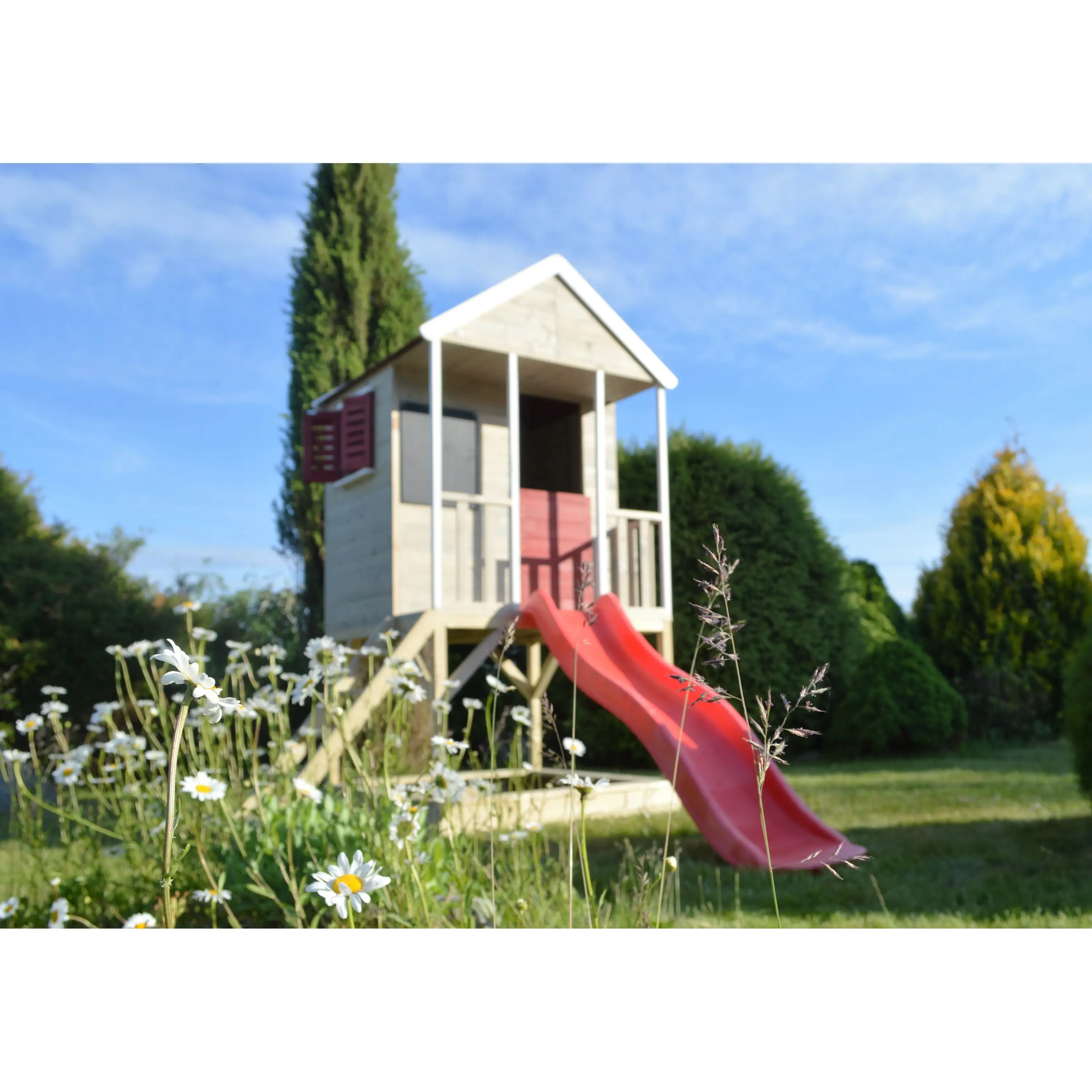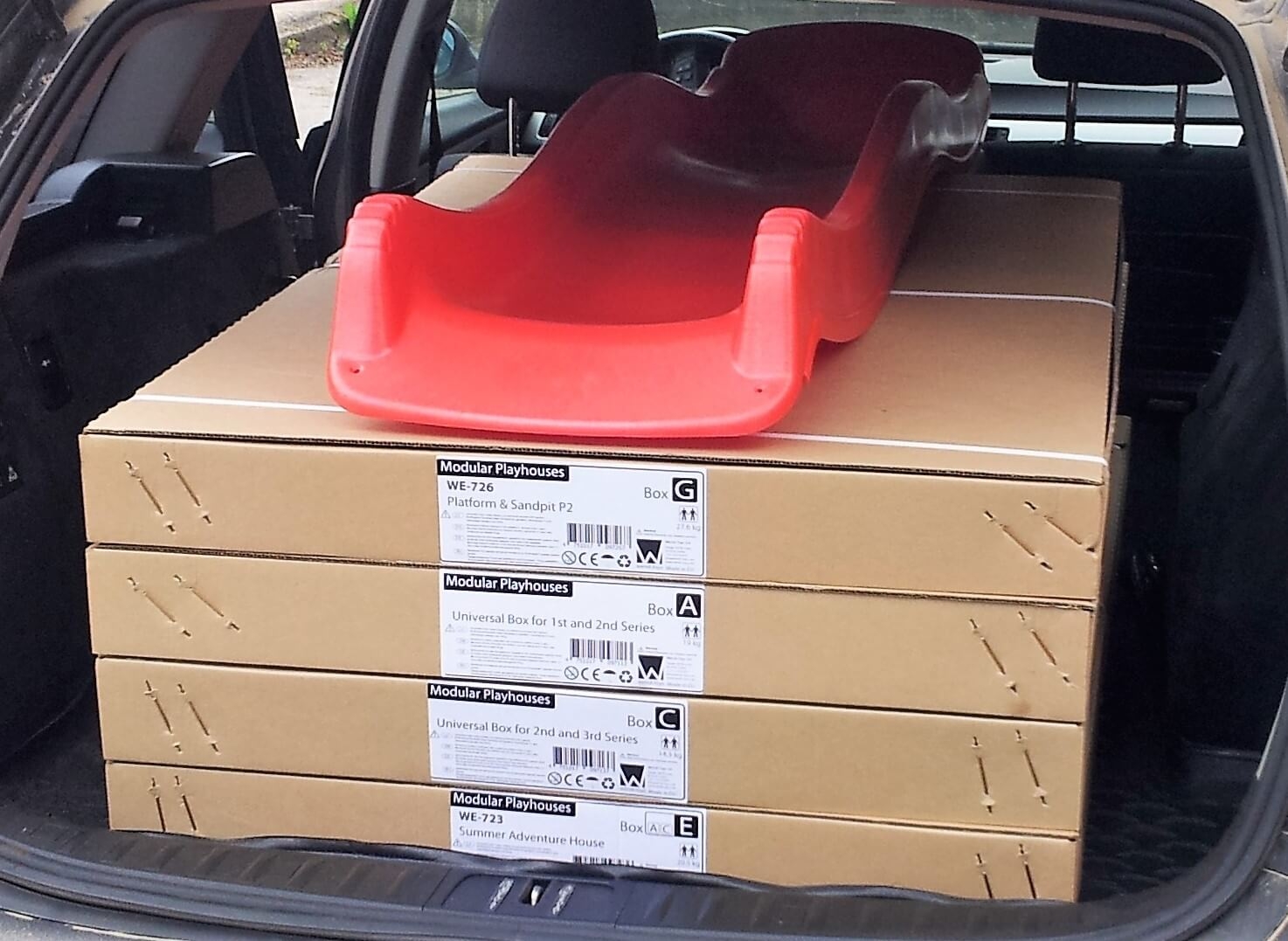 Domček na hranie sa dodáva v rozloženom stave z prefabrikovaných dielov vrátane spojovacieho materiálu. Celé steny a podlaha, ktoré je potrebné len priskrutkovať. Iba strecha je zostavená z jednotlivých dosiek, ktoré do seba zapadajú. Plošina sa dodáva aj v rozloženom stave (jednotlivé nosníky). Drevo je povrchovo upravené ochranným náterom.