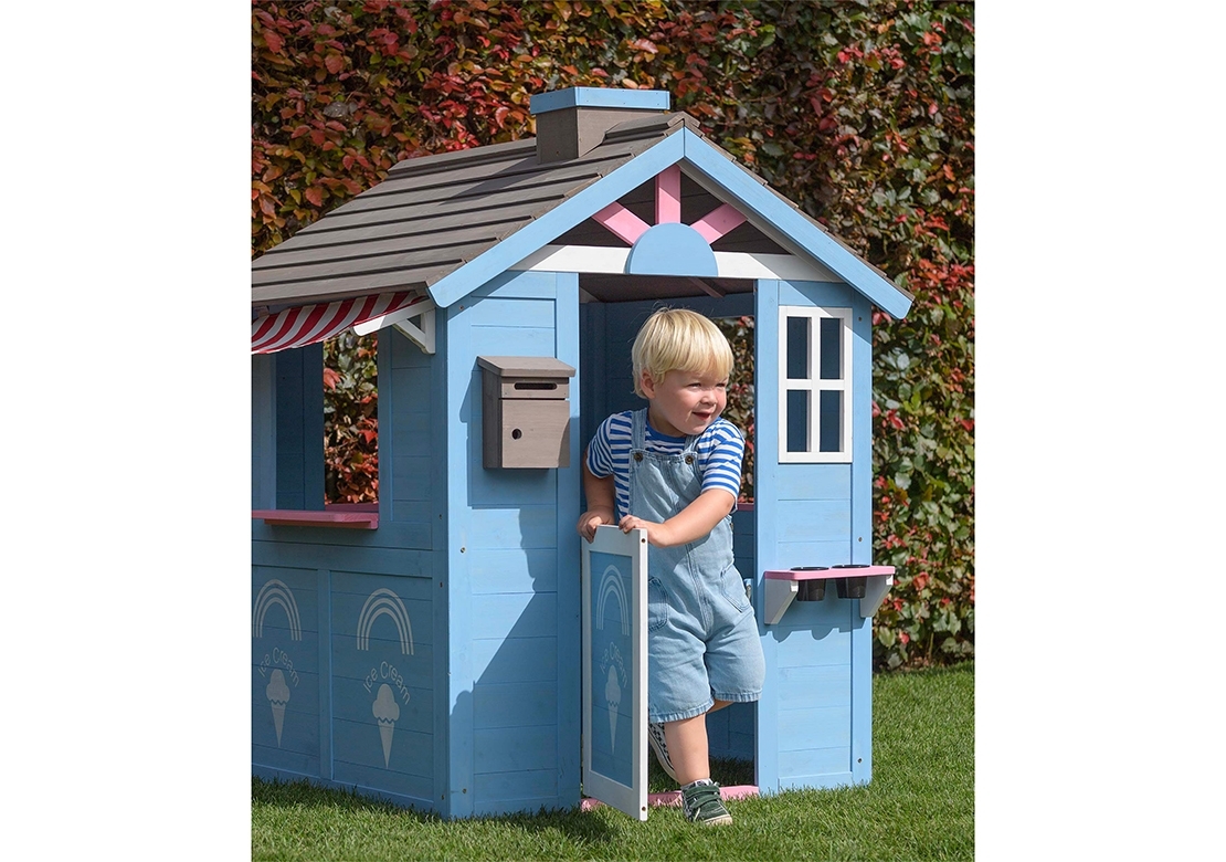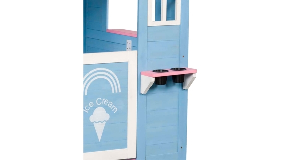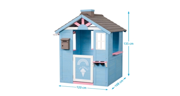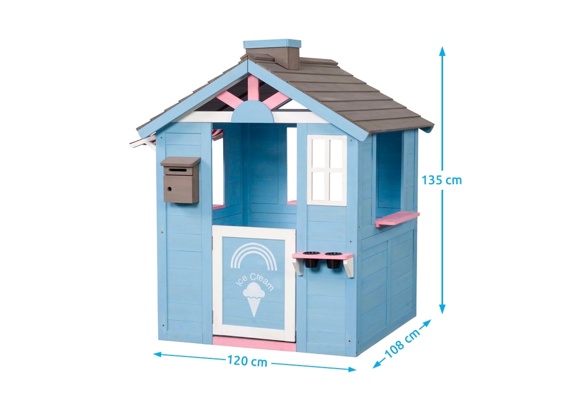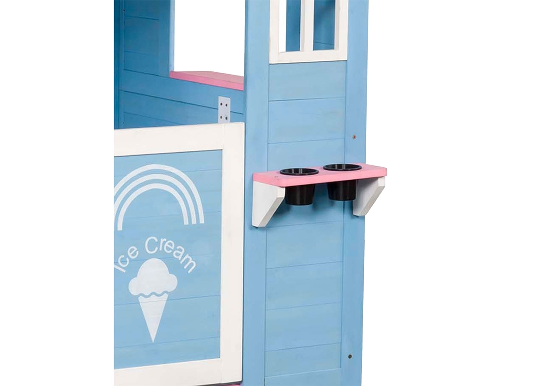 Hrací domček Zmrzlinový raj je vyrobený z farebného dreva. Má dvere "lietačky" a štyri okná bez okeníc. Drevo je ošetrené ochranným náterom a nevyžaduje žiadnu ďalšiu úpravu. Domček nemá podlahu.