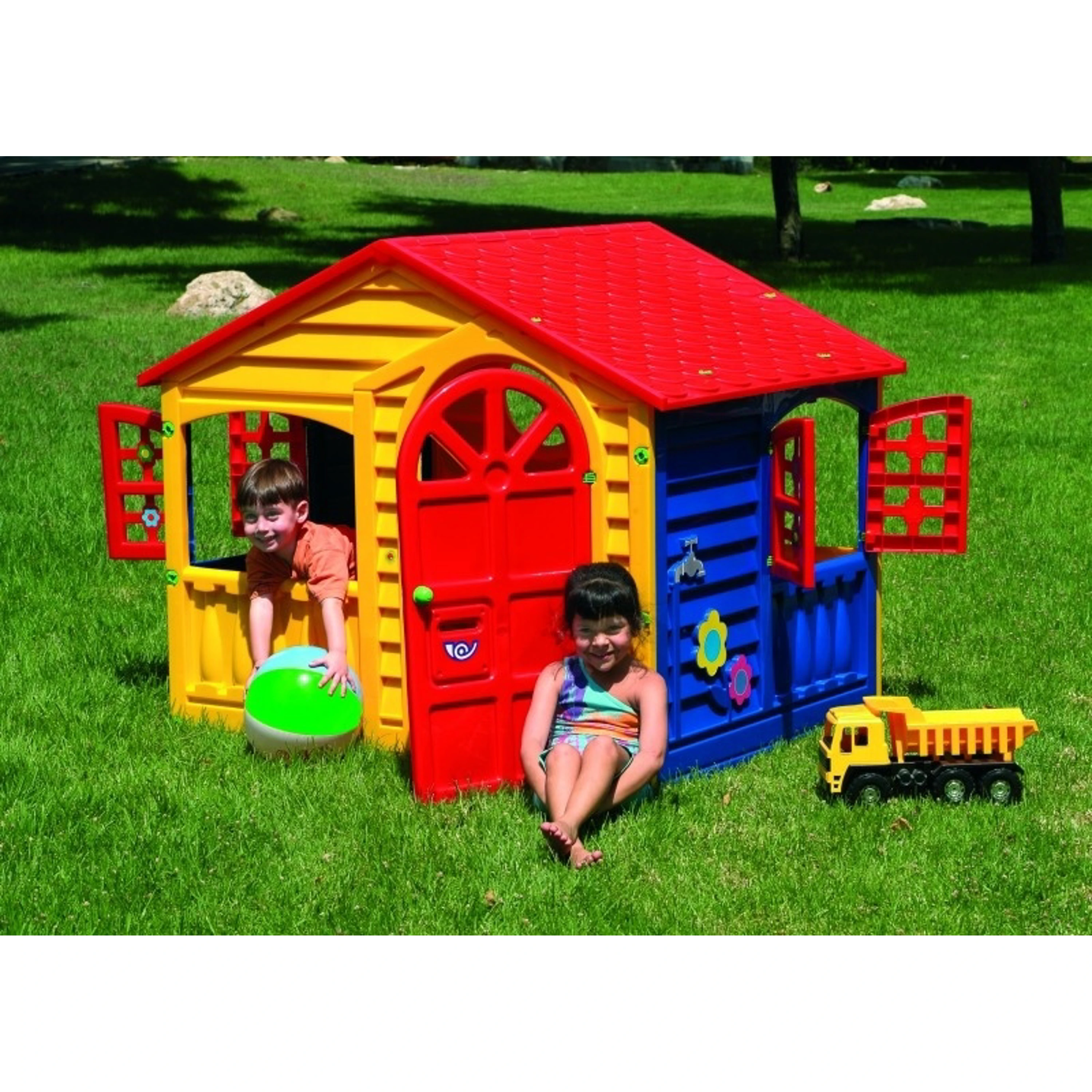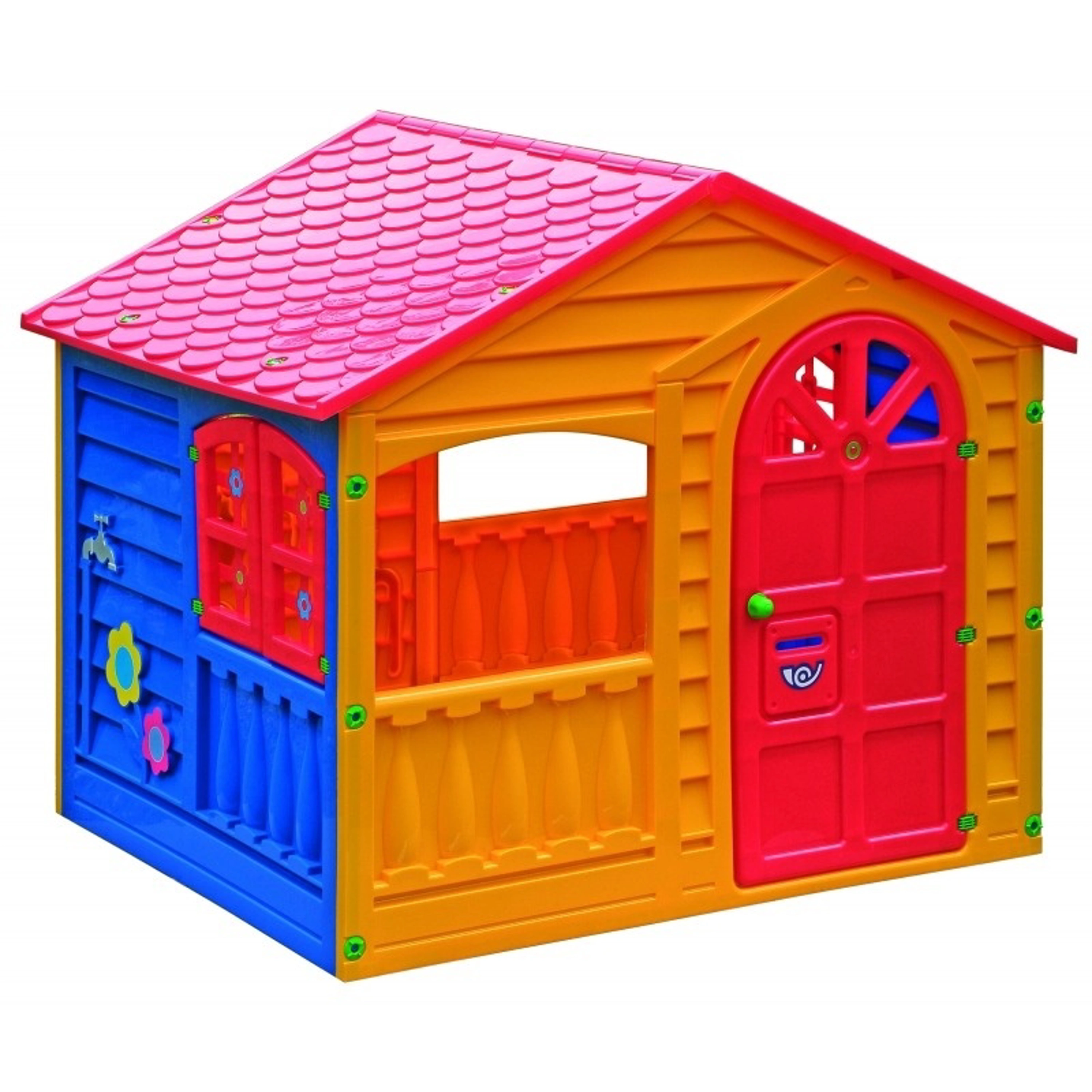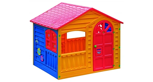 Najpredávanejší detský plastový domček na trhu, klasická červená strecha, 2 okná s okenicami a 2 bez nich, vysoký 115 cm
