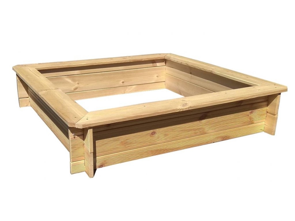 Drevené štvorcové pieskovisko s rozmermi 120 x 120 x 26 cm urobí radosť vašim deťom na každej záhrade. Pieskovisko je vybavené sedadlami na štyroch stranách.
