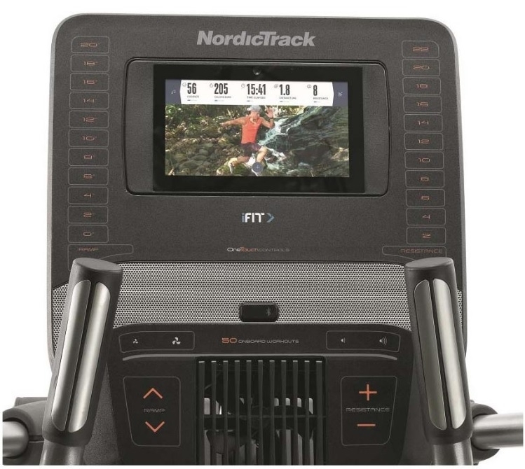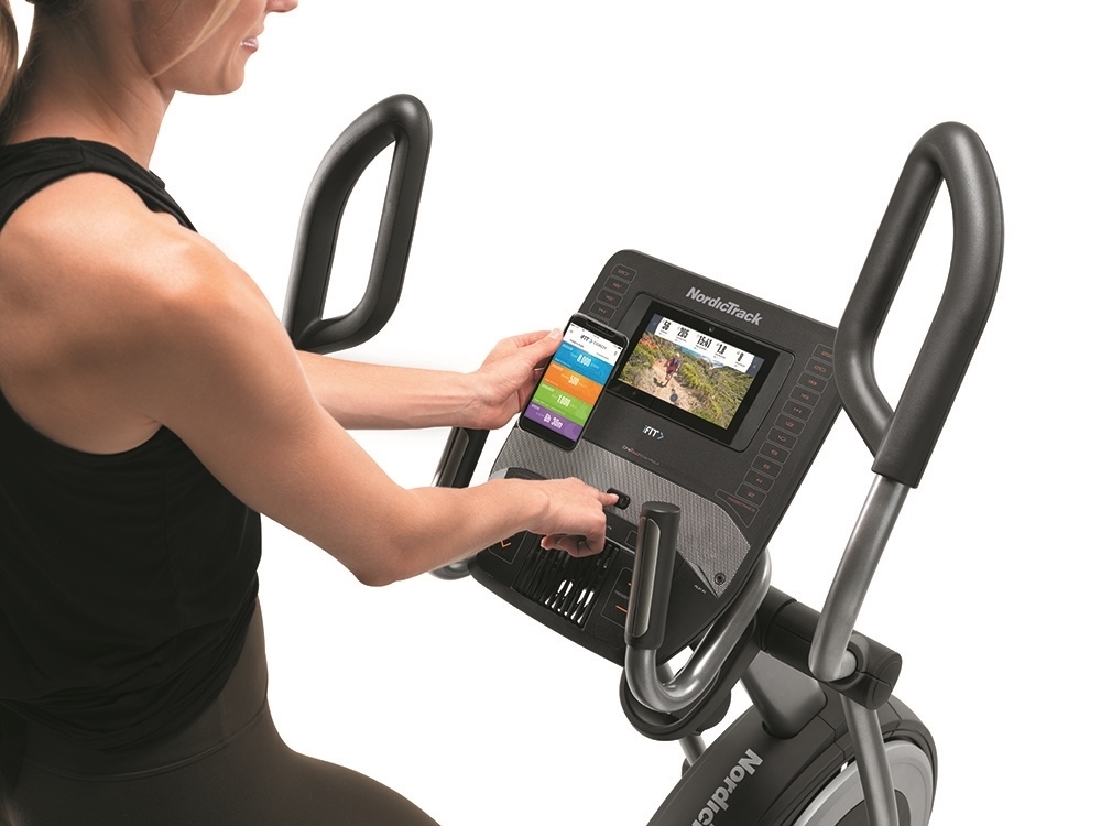 Model NordicTrack Commercial C9.9 má tréninkovou aplikaci iFIT přímo zabudovanou v trenažéru. K trenažéru nelze připojit tablet či telefon.