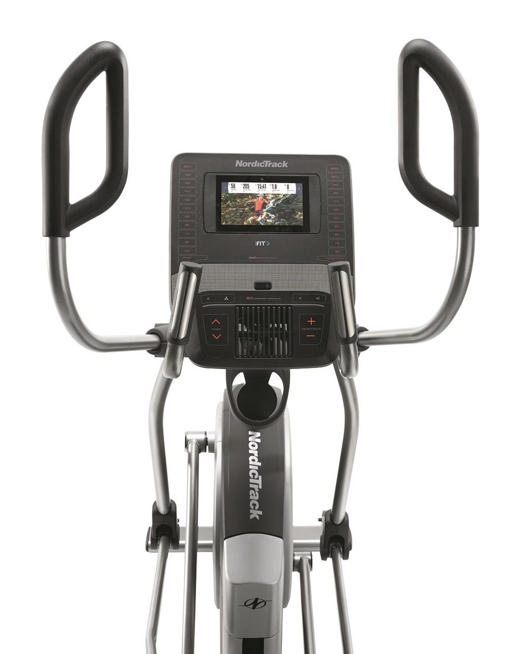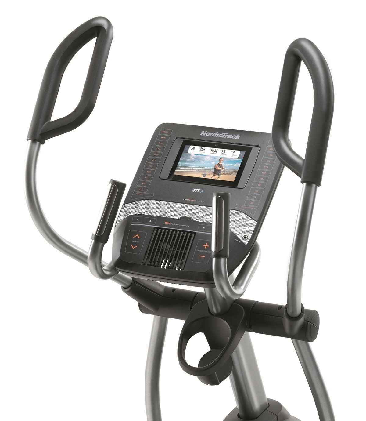 Eliptical NordicTrack Commercial C9.9 nabízí podsvícený 7" grafický dotykový displej, který se snadno ovládá a zobrazuje všechny běžné hodnoty tréninku. Základní zobrazované parametry na displeji jsou: čas, rychlost, vzdálenost, spálené kalorie (spotřeba Kcal), zátěž a tepová frekvence (pomocí dlaňových snímačů, či hrudního BLUETOOTH pásu, který není součástí balení, můžete ho ale u nás dokoupit). Z programové nabídky má 26 přednastavených programů pro spalování kalorií a zvyšování tělesné kondice. Stroj disponuje zabudovanými reproduktory s možností připojení MP3 přehrávače. Součástí stroje je držák na tablet, který využijete pro tréninkovou aplikaci iFit nebo sledování oblíbených seriálů pro maximální komfort při tréninku. Tablet není součástí dodávky.