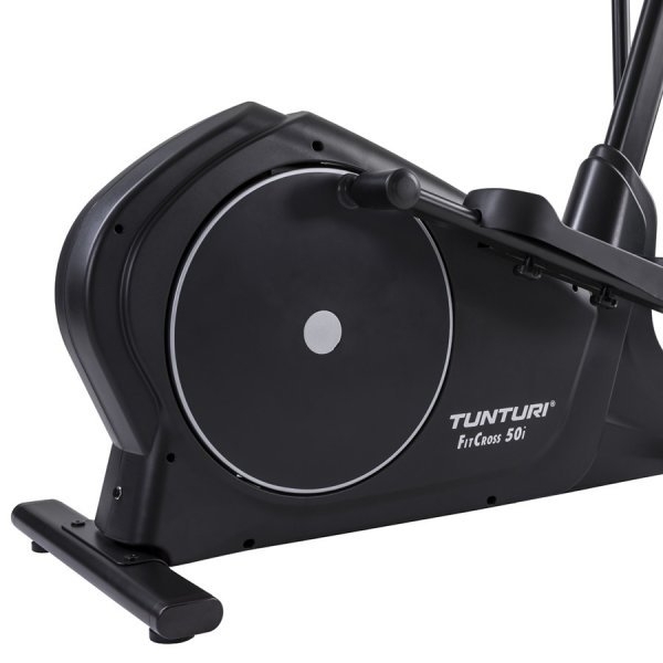 TUNTURI FitCross 50i patrí medzi tzv. eliptické trenažéry so zotrvačníkom v zadnej časti stroja. Kombinuje kvalitnú mechaniku a ergonómiu rámu s nosnosťou do 150 kg. Práve vďaka dômyselnej ergonómii trenažéra a dobrej mechanike je zaručený pohodlný a správny pohyb pri tréningu. Masívna konštrukcia spolu s kvalitnými komponentmi predlžuje životnosť stroja aj pri využití ťažšími osobami a je bezproblémový aj pri pravidelnom domácom tréningu. Zotrvačníková hmota s kalibrovaným zotrvačníkom s hmotnosťou 14 kg, plochý remeň s dopínacou kladkou a moderná magnetická brzda zaručuje pri TUNTURI FitCross 50i komfortný, plynulý a úplne tichý chod aj pri väčších záťažiach pri tréningu.