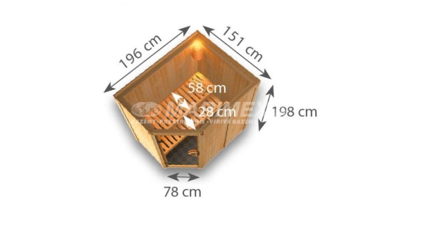 Fínska sauna od európskeho výrobcu Karibu. Nemecký výrobca zaručuje veľmi kvalitné materiály použité pri výrobe a dokonalé dielenské spracovanie. Sauna je pripravená k svojpomocnej montáži. Pôdorys fínskej sany ??Carin je obdĺžnikový, vstup je zo skoseného rohu. K fínskej saune je nutné zakúpiť saunovú piecku!