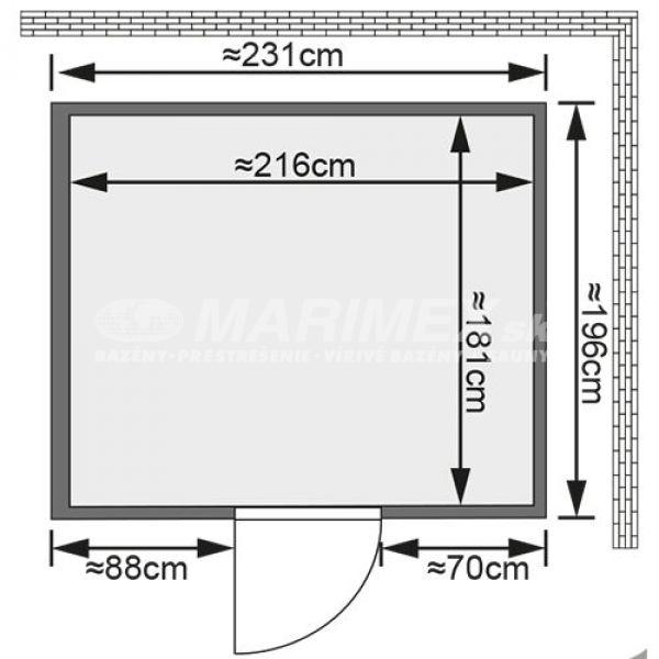 Fínska sauna od európskeho výrobcu Karibu. Nemecký výrobca zaručuje veľmi kvalitné materiály použité pri výrobe a dokonalé dielenské spracovanie. Sauna Gobin je pripravená k svojpomocnej montáži. Pôdorys sauny je obdĺžnikový, vstup je zo sprostred dlhšej steny. K fínskej saune je nutné zakúpiť saunovú piecku!