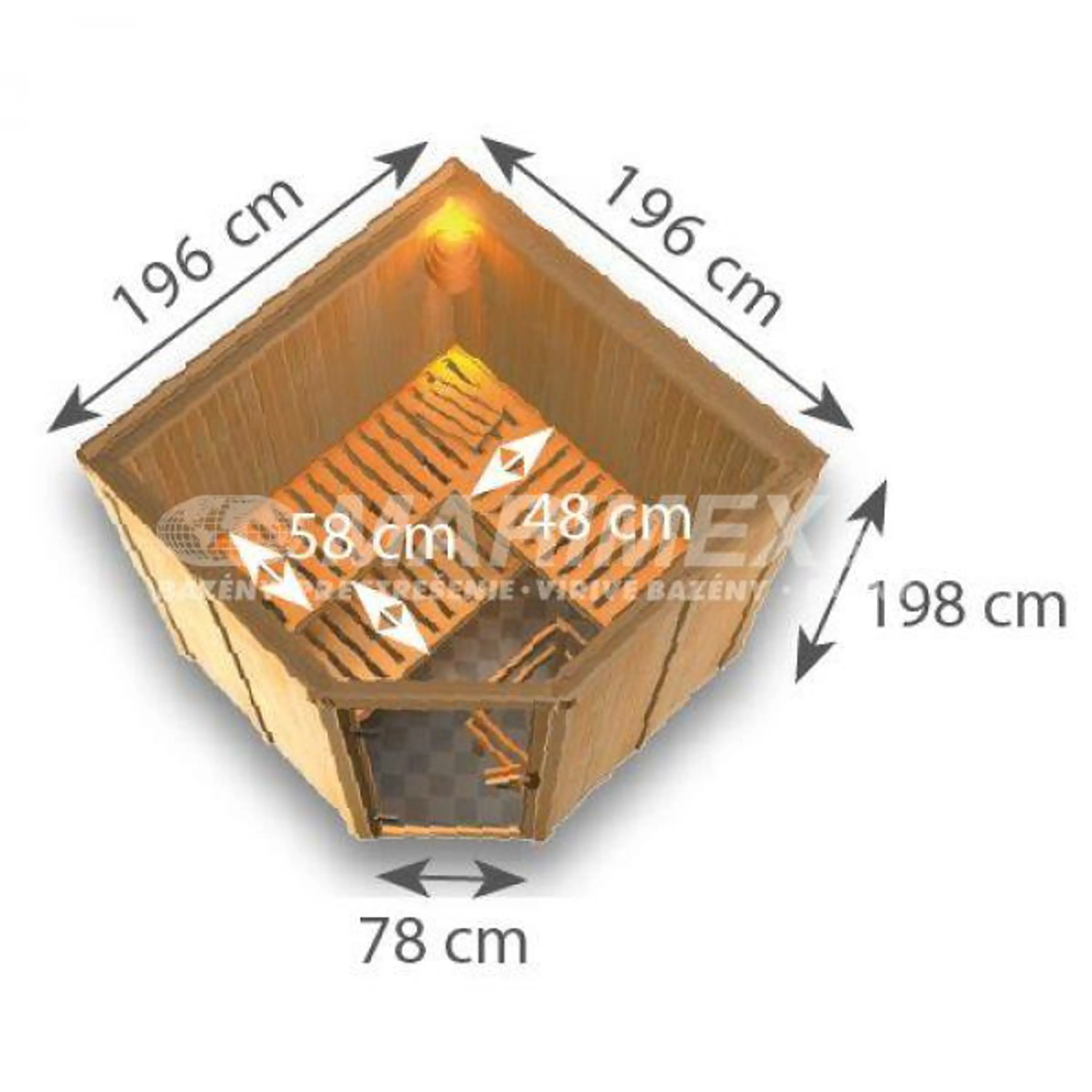 Fínska sauna od európskeho výrobcu Karibu. Nemecký výrobca zaručuje veľmi kvalitné materiály použité pri výrobe a dokonalé dielenské spracovanie. Sauna Jarin je pripravená k svojpomocnej montáži. Pôdorys sauny je štvorcový, vstup je zo skoseného rohu. K fínskej saune je nutné zakúpiť saunovú piecku!