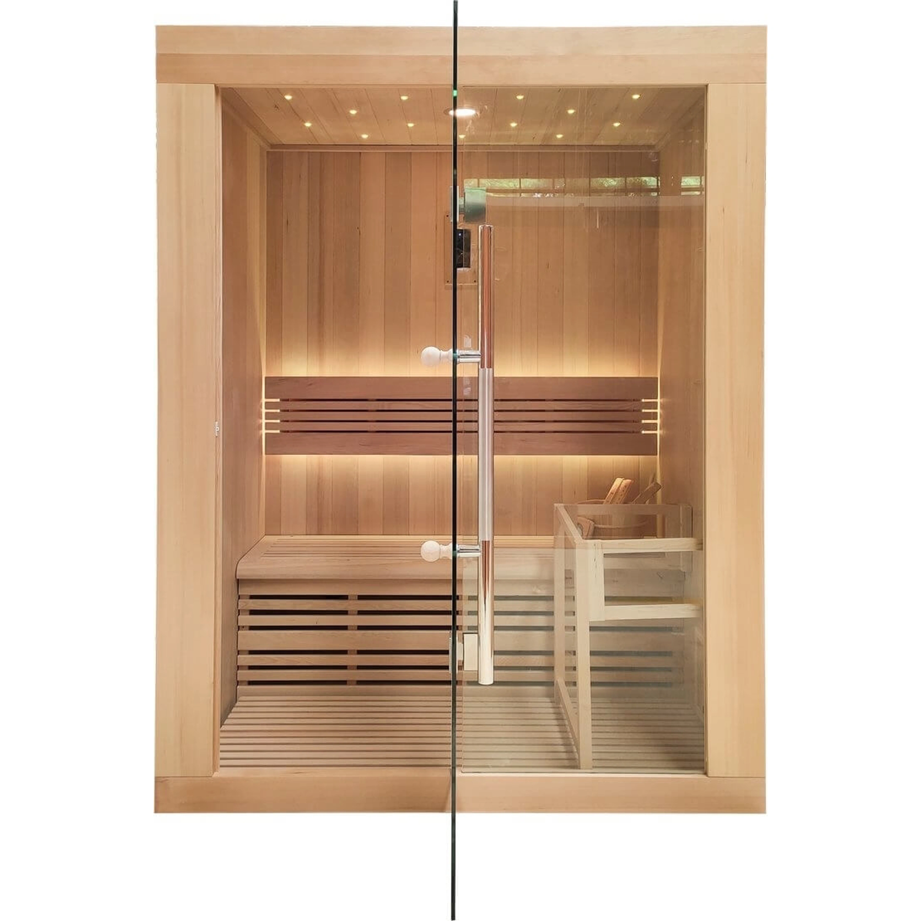Vlastnosti materiáluSauna je vyrobená z dreva kanadského jedľovca – hemlocku. Medzi jeho hlavnú prednosť patrí odolnosť, bezsukovosť a vynikajúce tepelnoizolačné vlastnosti. |