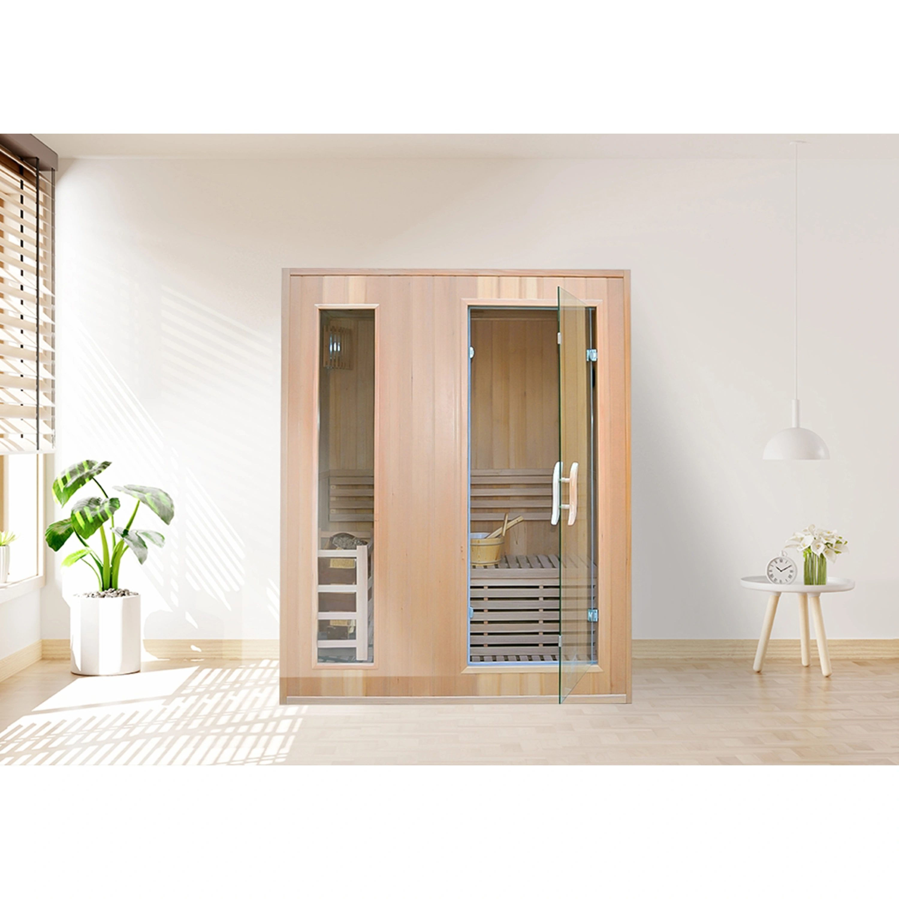 Vlastnosti materiáluSauna je vyrobená z dreva kanadského jedlovca – hemlocku. Medzi jeho hlavné prednosti patrí odolnosť, bezsukovosť a vynikajúce tepelnoizolačné vlastnosti. |