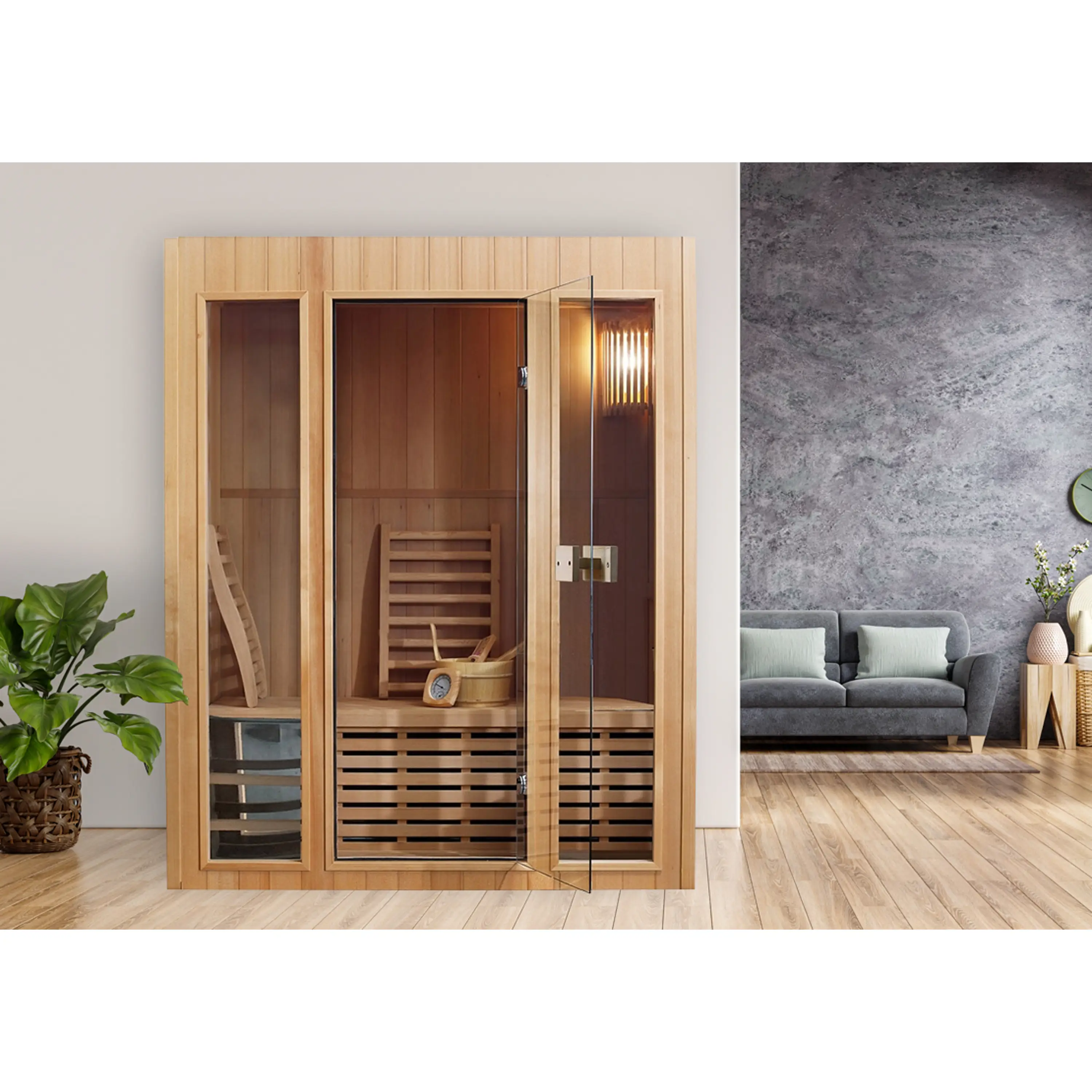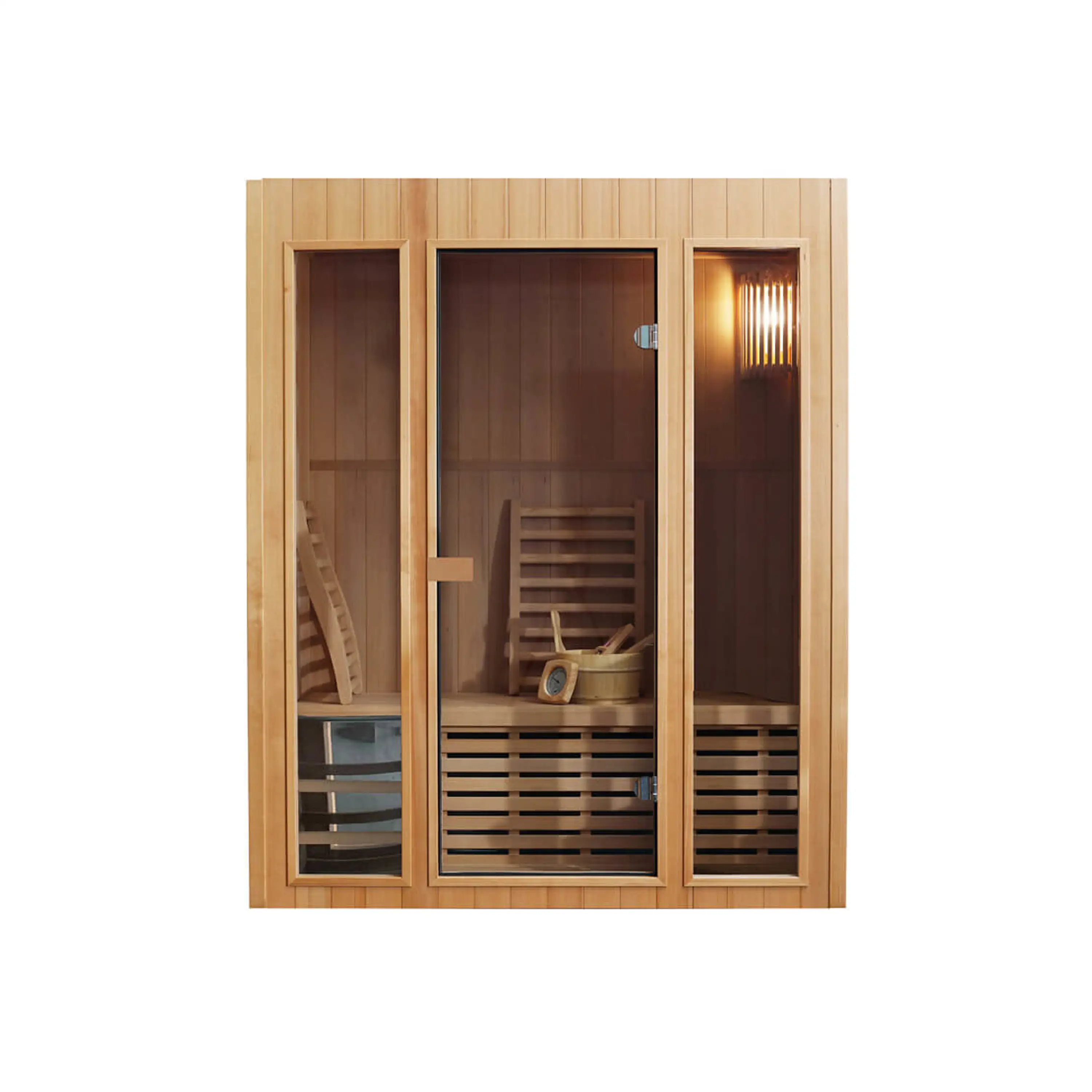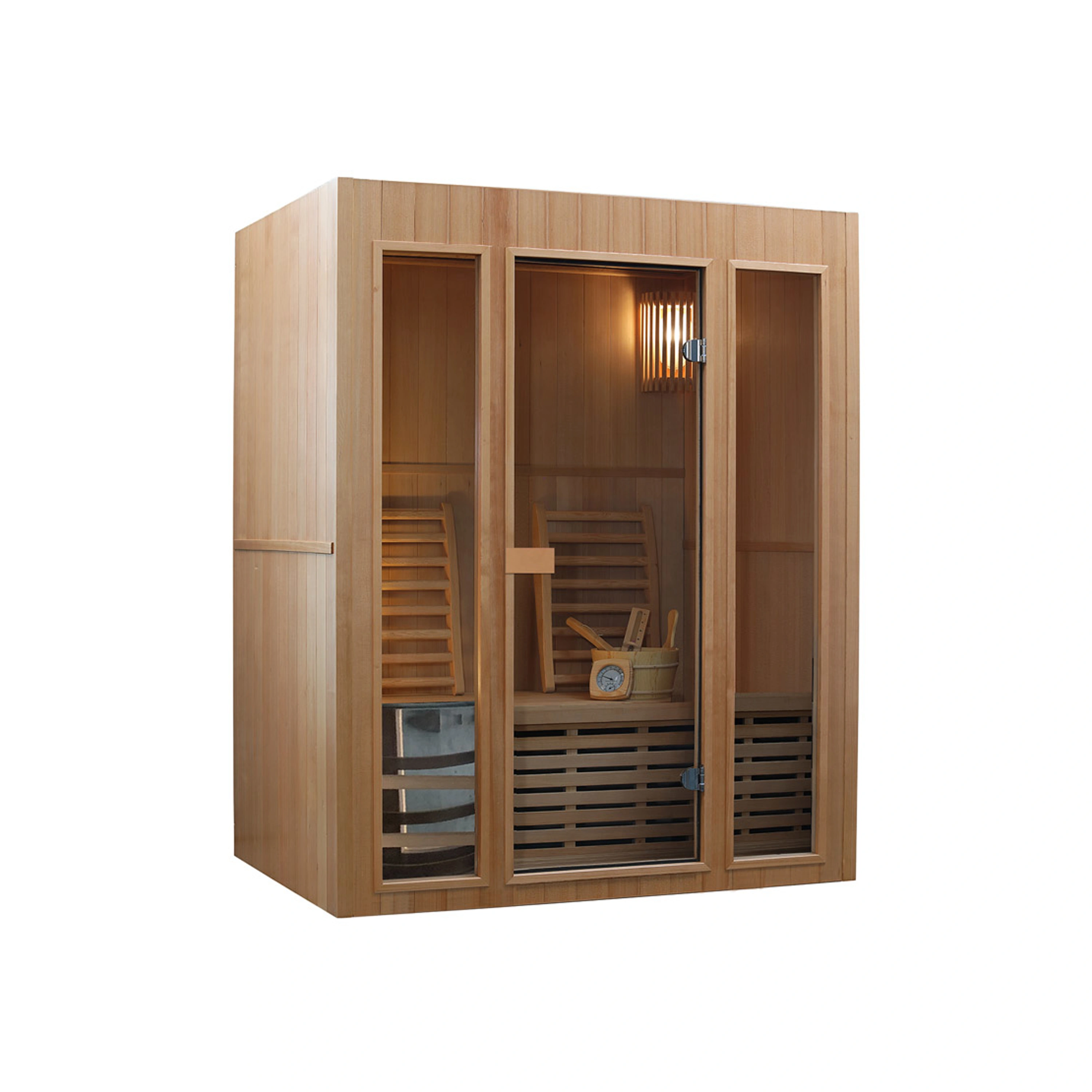 Sauna je vyrobená z dreva kanadského jedľovca – hemlocku. Medzi jeho hlavnú prednosť patrí odolnosť, bezsukovosť a vynikajúce tepelnoizolačné vlastnosti.