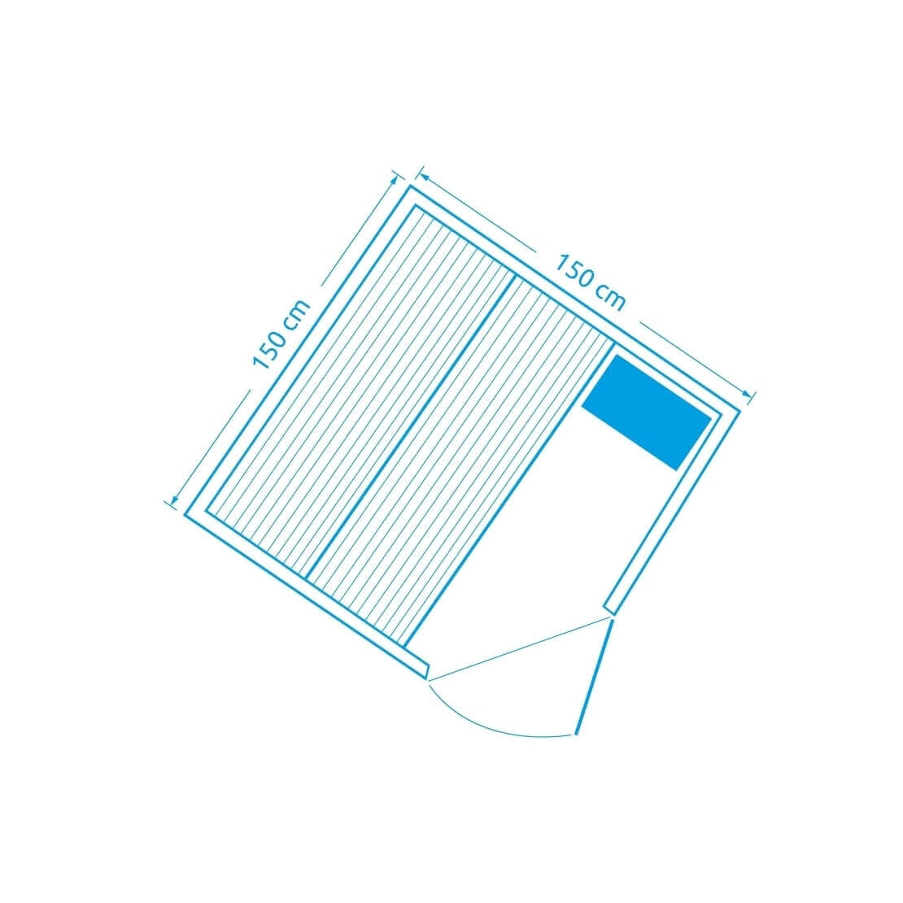 - Korpus sauny pre tri osoby vrátane lavice a podlahového roštu