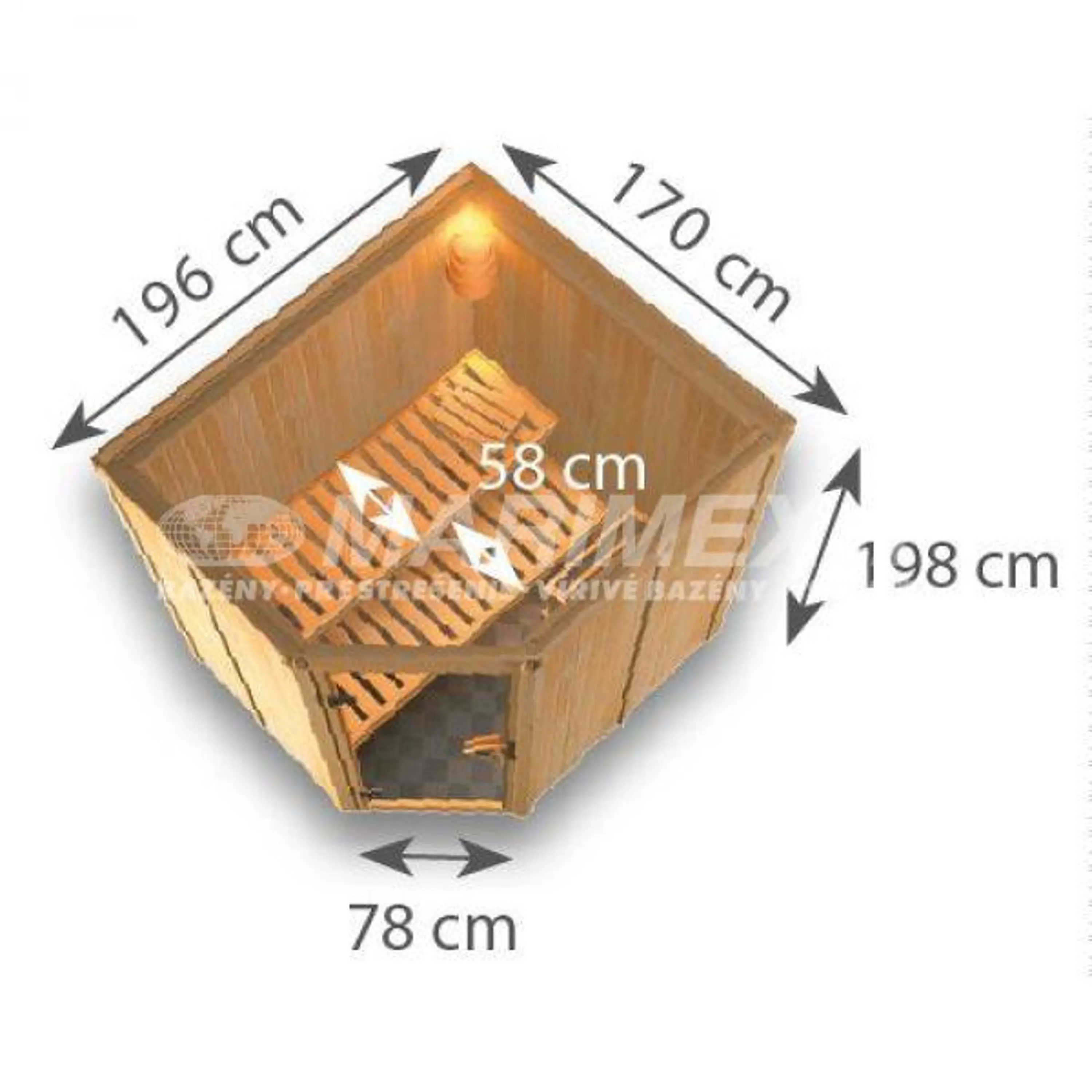 Fínska sauna od európskeho výrobcu Karibu. Nemecký výrobca zaručuje veľmi kvalitné materiály použité pri výrobe a dokonalé dielenské spracovanie. Sauna Siirin je pripravená k svojpomocnej montáži. Pôdorys sauny je obdĺžnikový, vstup do nej je na zkosenej stene. K fínskej saune je nutné zakúpiť saunové kachle!