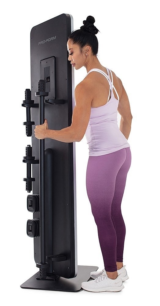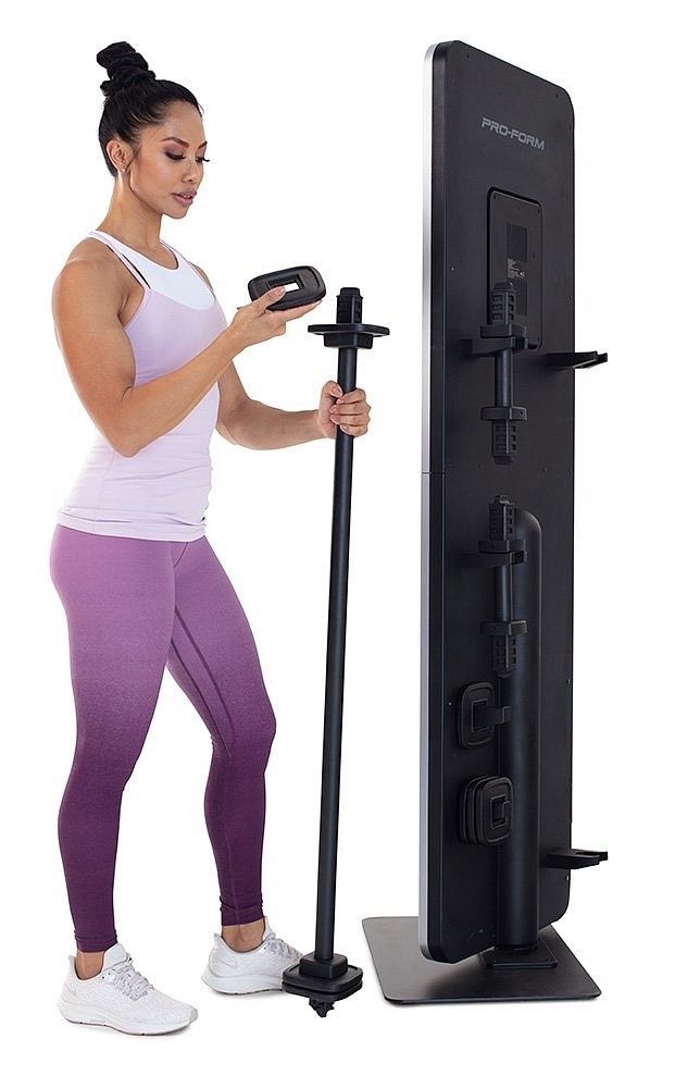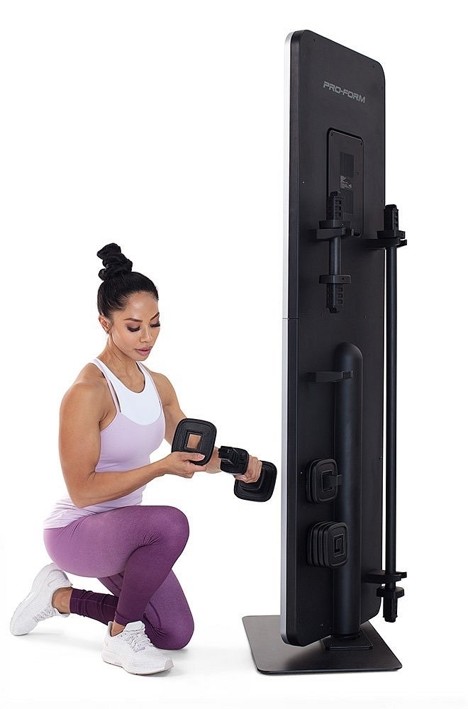 Súčasťou ProForm Vue je sada príslušenstva pre posilňovanie. Priložené príslušenstvo má svoj vlastný úložný priestor za zrkadlom mimo dohľadu.