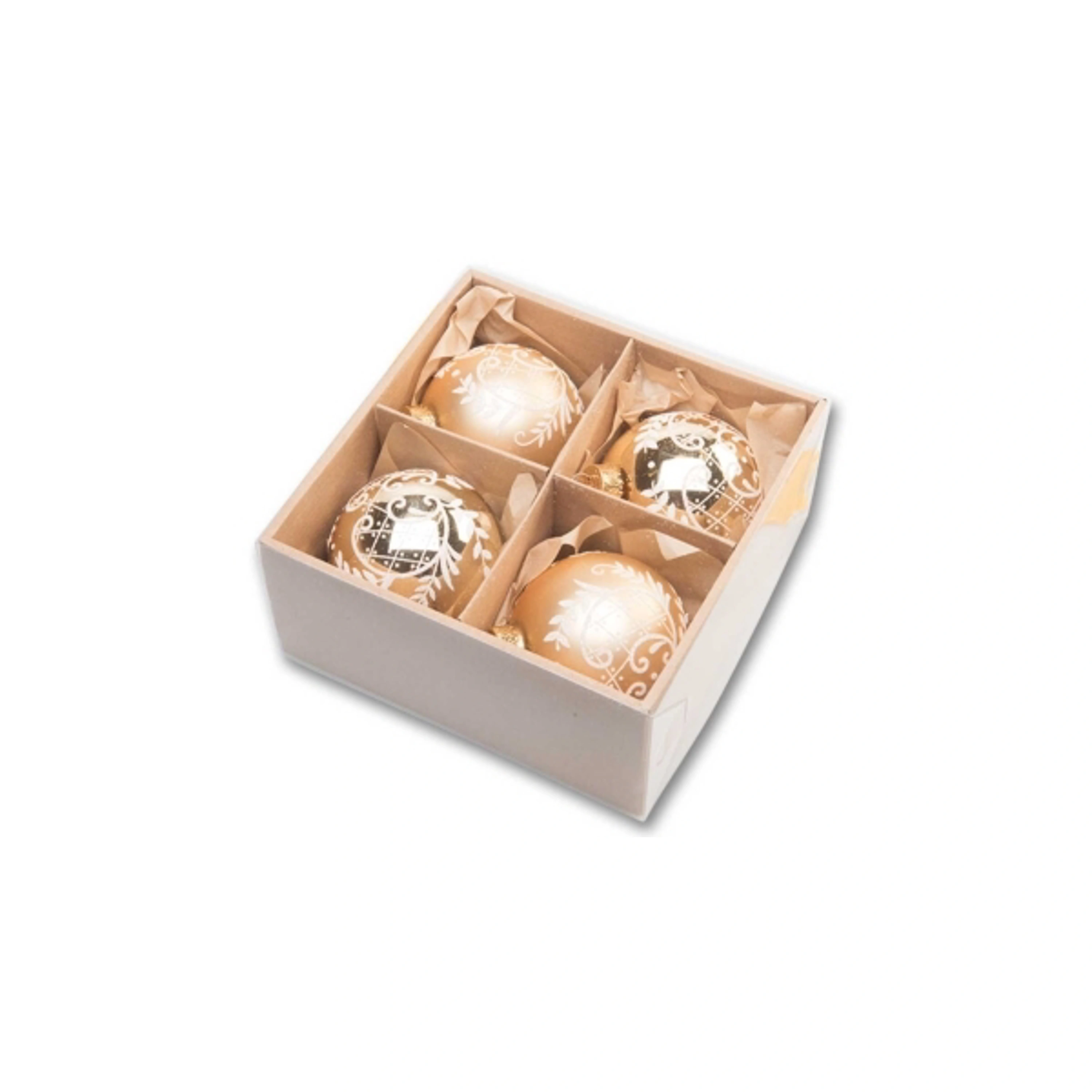 Sklenený set 4 kusov vianočných gúľ v tradičnej zlatej farbe.
