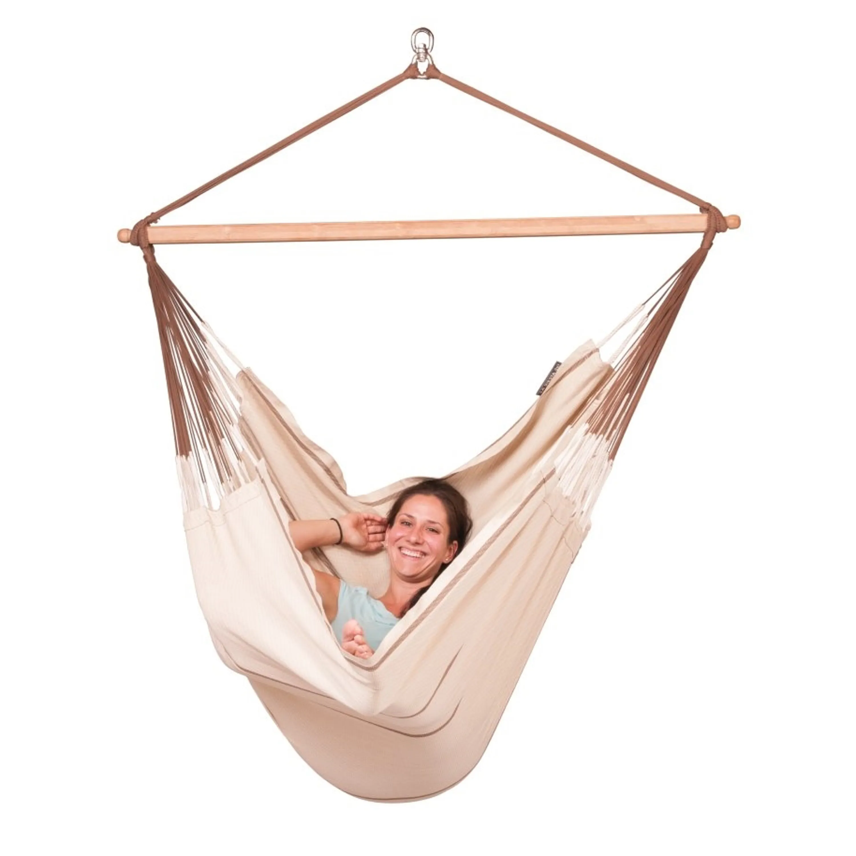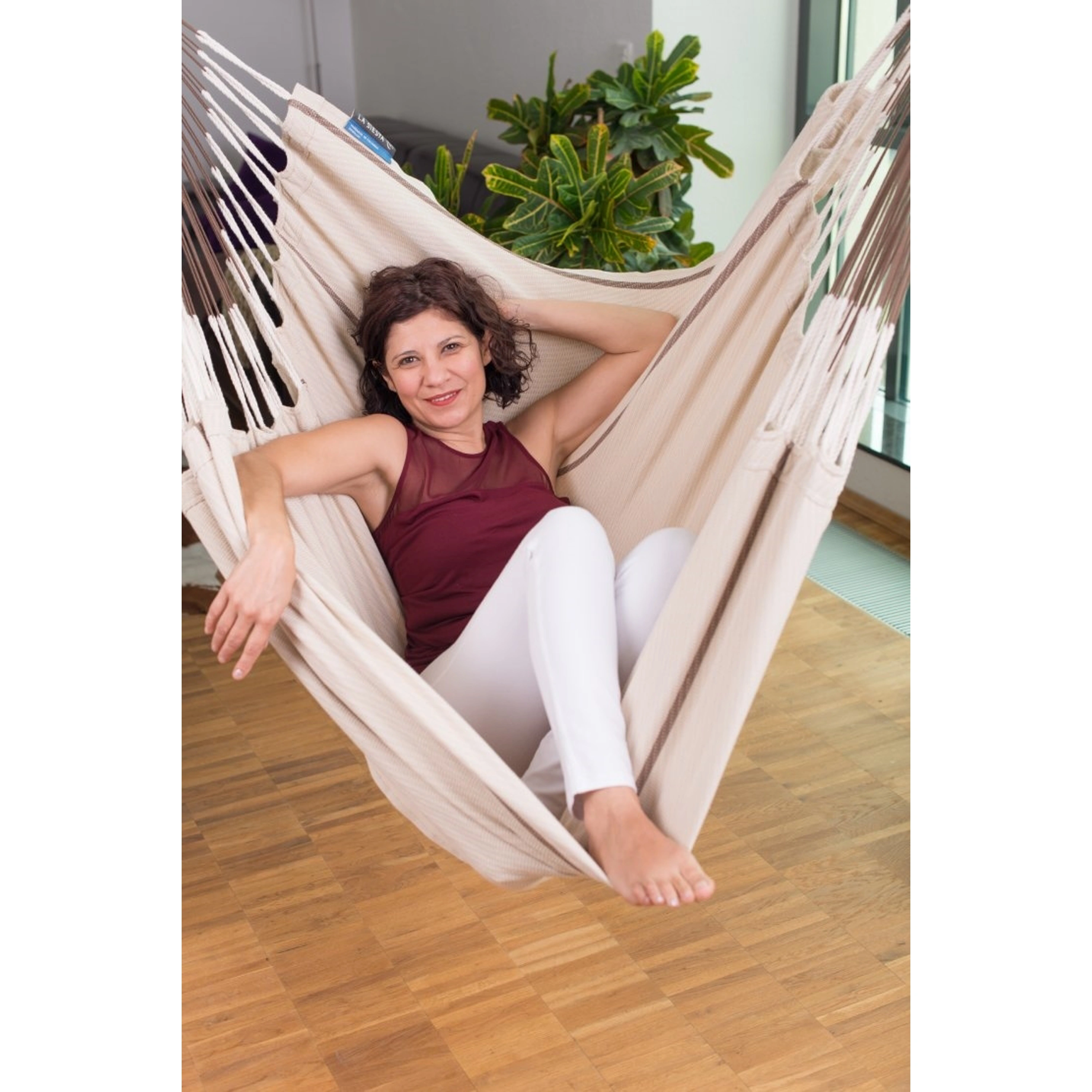 V priestrannej hojdacej sedačke La Siesta Habana Kingsize, čosi nugát z hebkej organickej bavlny vydržíte relaxovať celé hodiny. K vášmu pocitu beztiaže prispeje aj to, že bola vyrobená spôsobom prívetivým k ľuďom aj prírode.