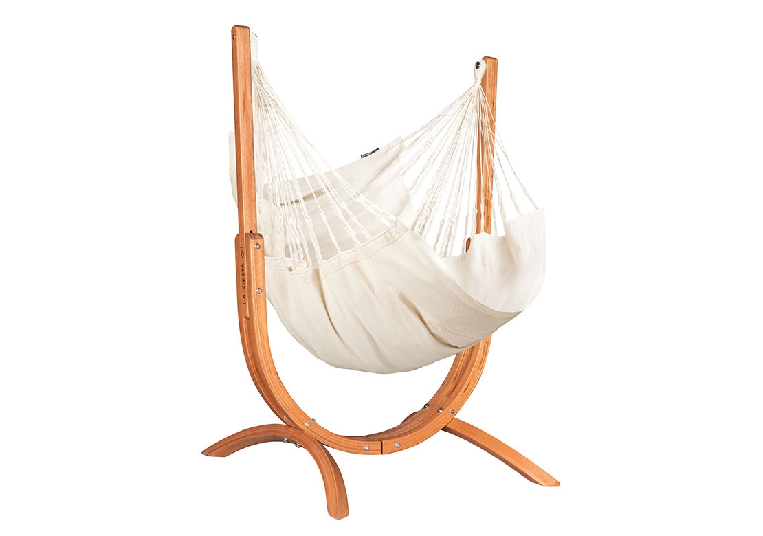 Úžasné kombo – závesná sedačka s dreveným stojanom – pre maximálnu relaxáciu na minimálnom priestore – vaša oáza kedykoľvek a kdekoľvek si budete priať.