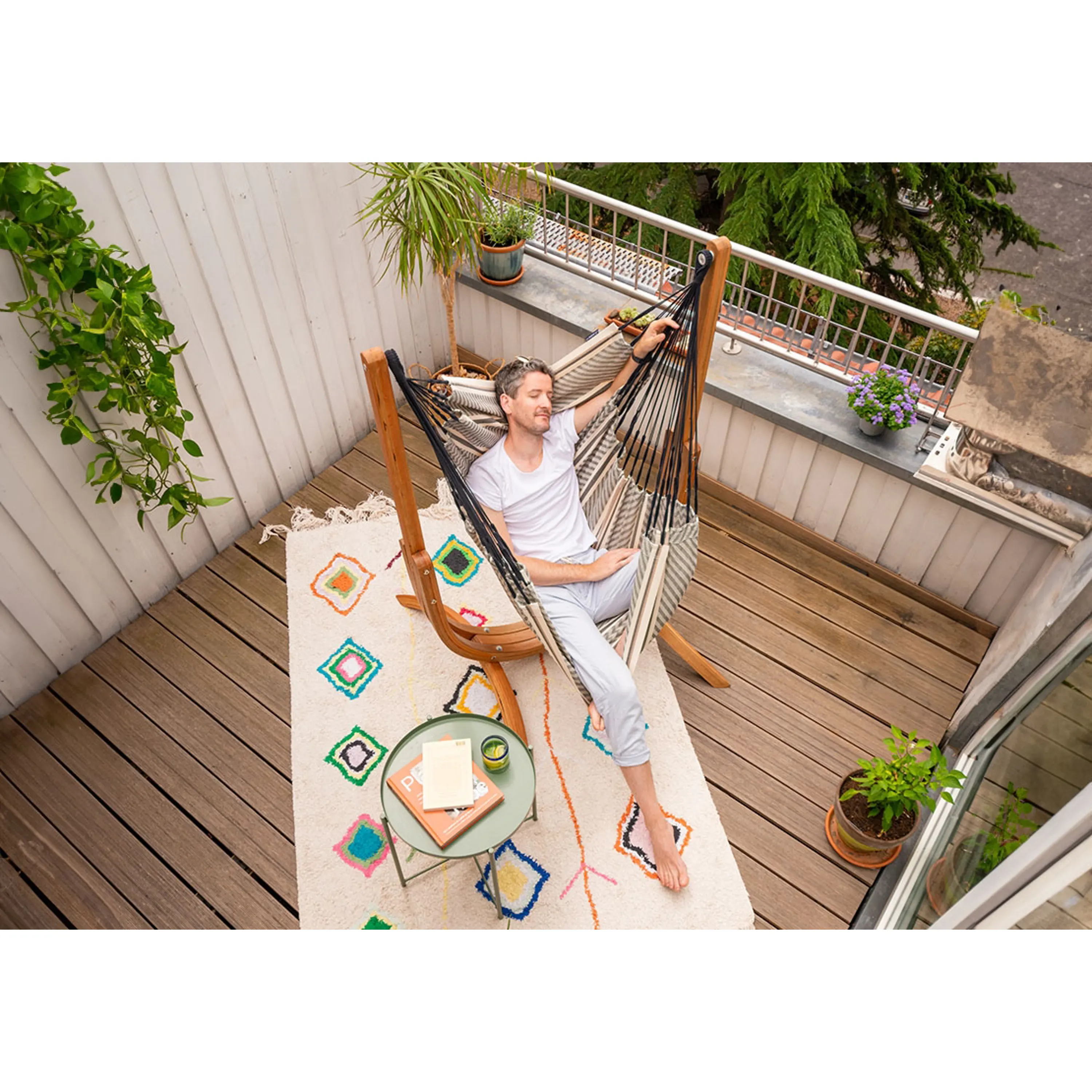 Osobné aj globálne starosti môžete hodiť za hlavu, závesná sedačka aj stojan sú vyrobené z udržateľných materiálov a sú spracované s vysokou remeselnou zručnosťou, takže vám vydržia dlhé roky bezstarostnej relaxácie. Tú umocňujú rafinované kolumbijské vzory, ktoré vám domov vnesú atmosféru juhoamerickej pohody a radosti zo života.
