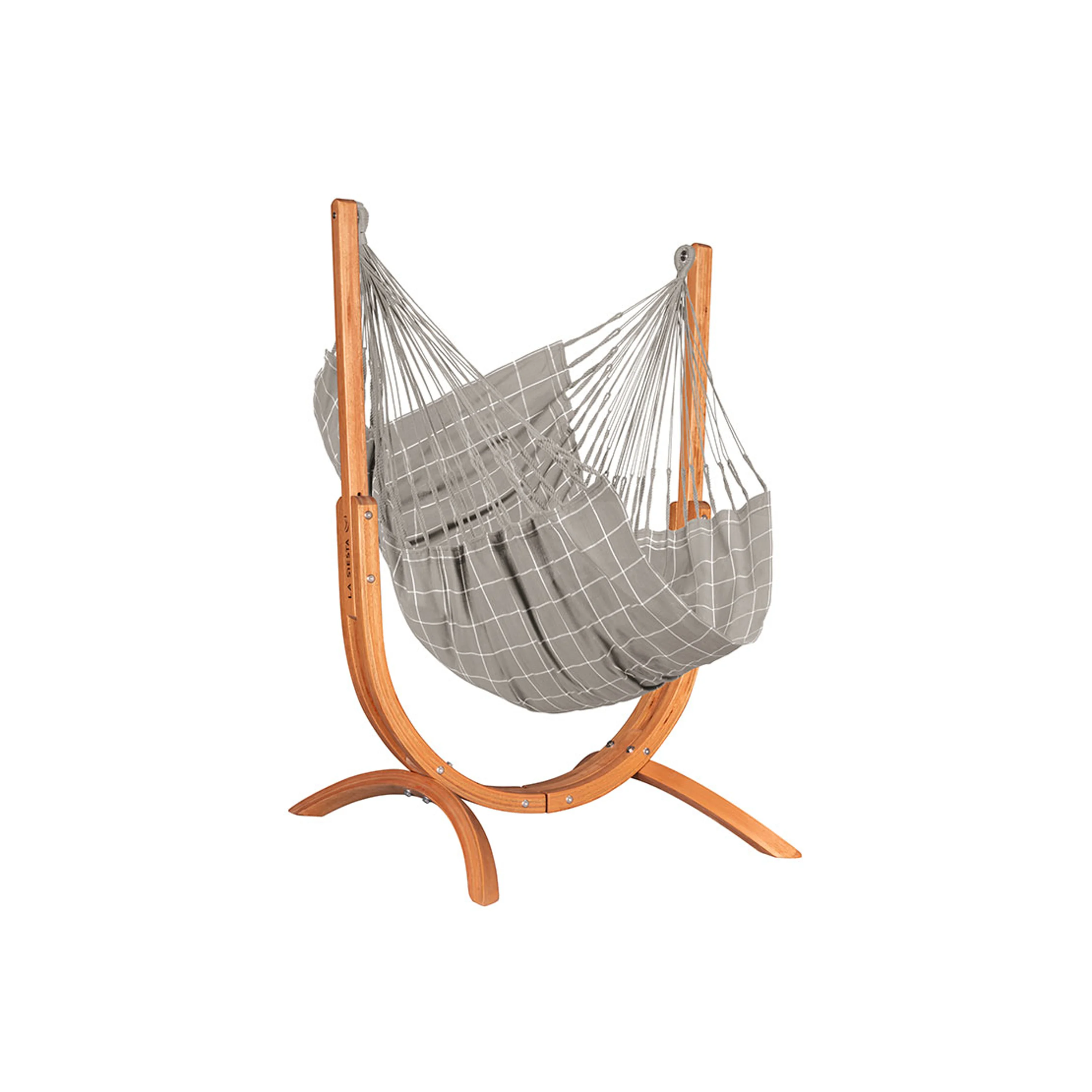 Úžasné kombo – závesná sedačka s dreveným stojanom – pre maximálnu relaxáciu na minimálnom priestore – vaša oáza kedykoľvek a kdekoľvek si budete priať.