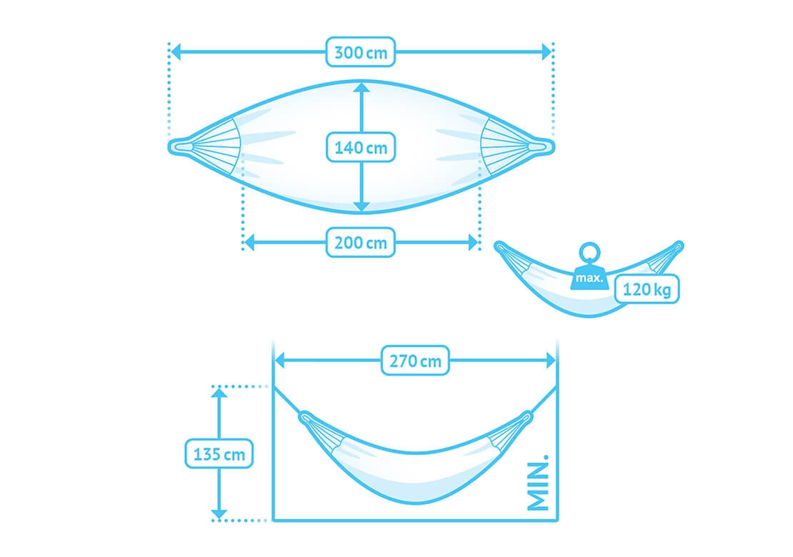 - min. vzdialenosť na zavesenie siete: 270 cm