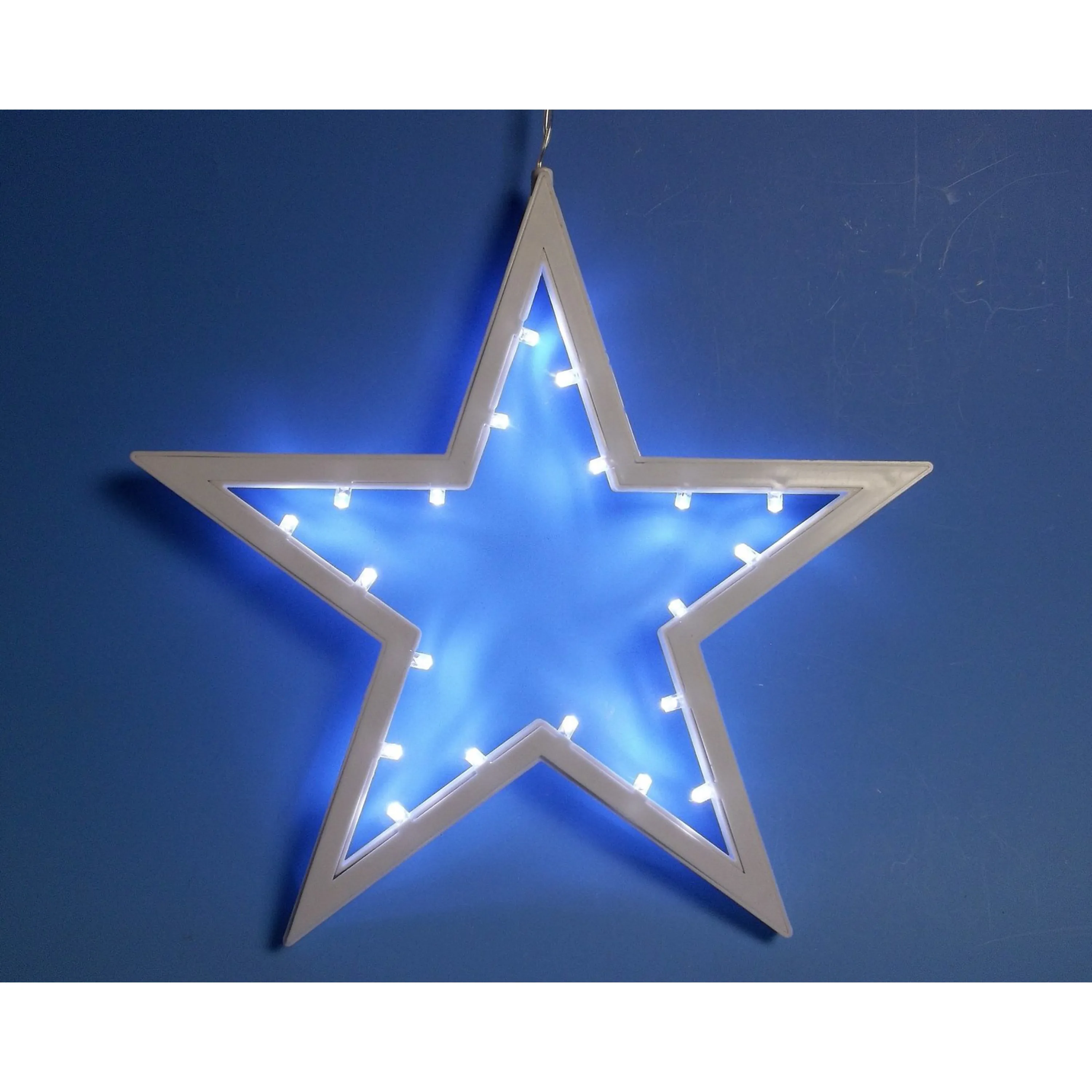 Dekoratívne vianočné osvetlenie 20 LED diód studená biela, výborne vyzdvihne slávnostnú a romantickú atmosféru počas vianočných sviatkov. Hviezdu je možné zavesiť do okna, na dvere alebo iba na stenu.