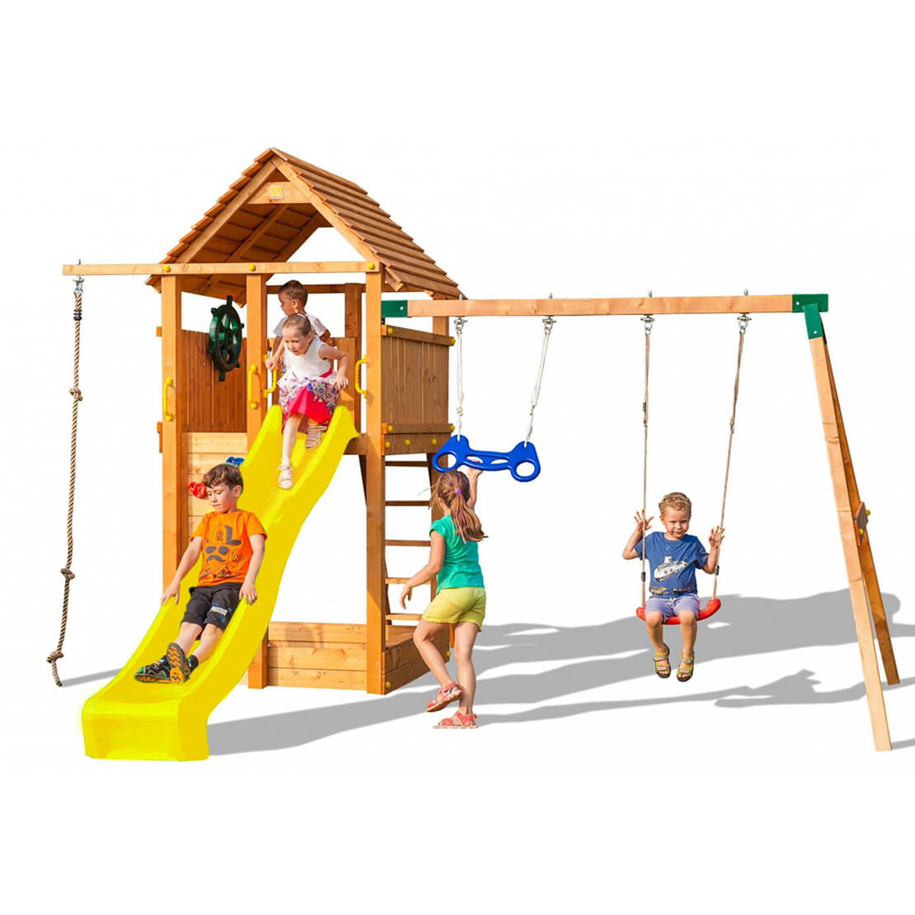 Drevený materiál je opracovaný tak, aby znižoval riziko zranenia detí. Zároveň je impregnovaný pre dlhú životnosť a vysokú odolnosť celého ihriska.