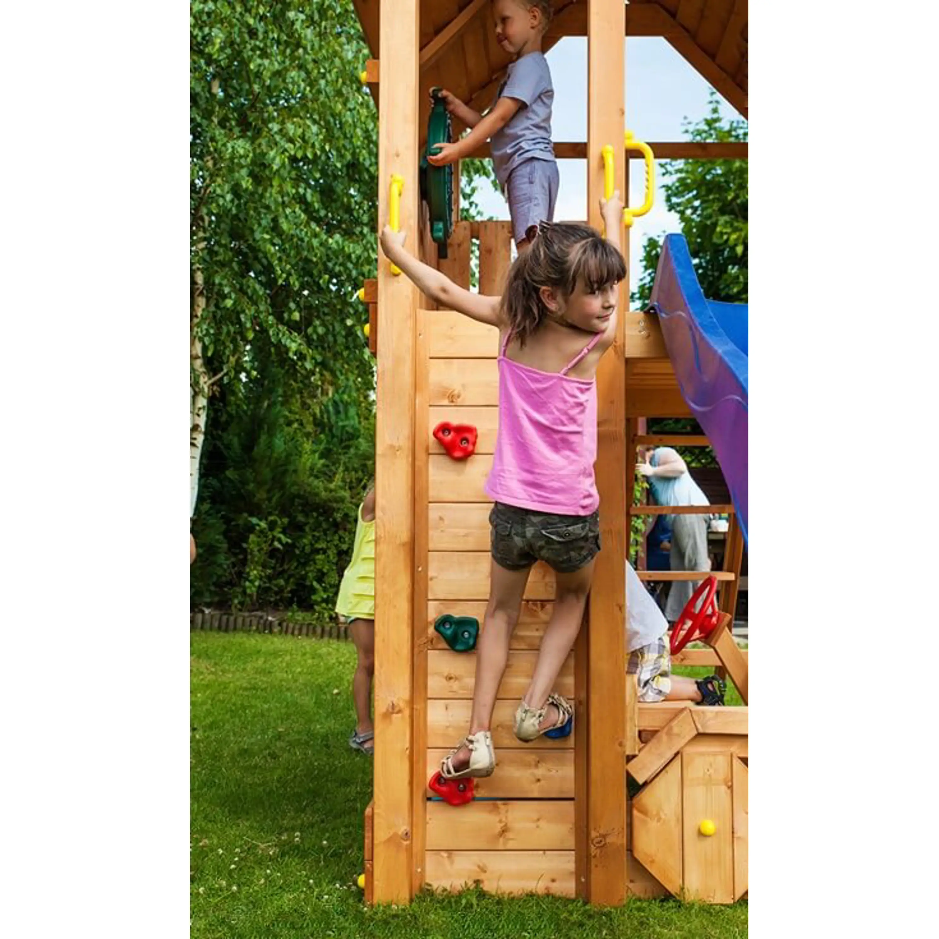 S detským ihriskom Marimex Play 004 Vaše deti zažijú veľa zábavy a budú rozvíjať svoj pohybový aparát. Ihrisko sa skladá z veže a 3 metre dlhé šmykľavky. Deti sa môžu dostať na vežu buď po schodíkoch s madlami, alebo vyliezť ako horolezci po horolezeckej stene.