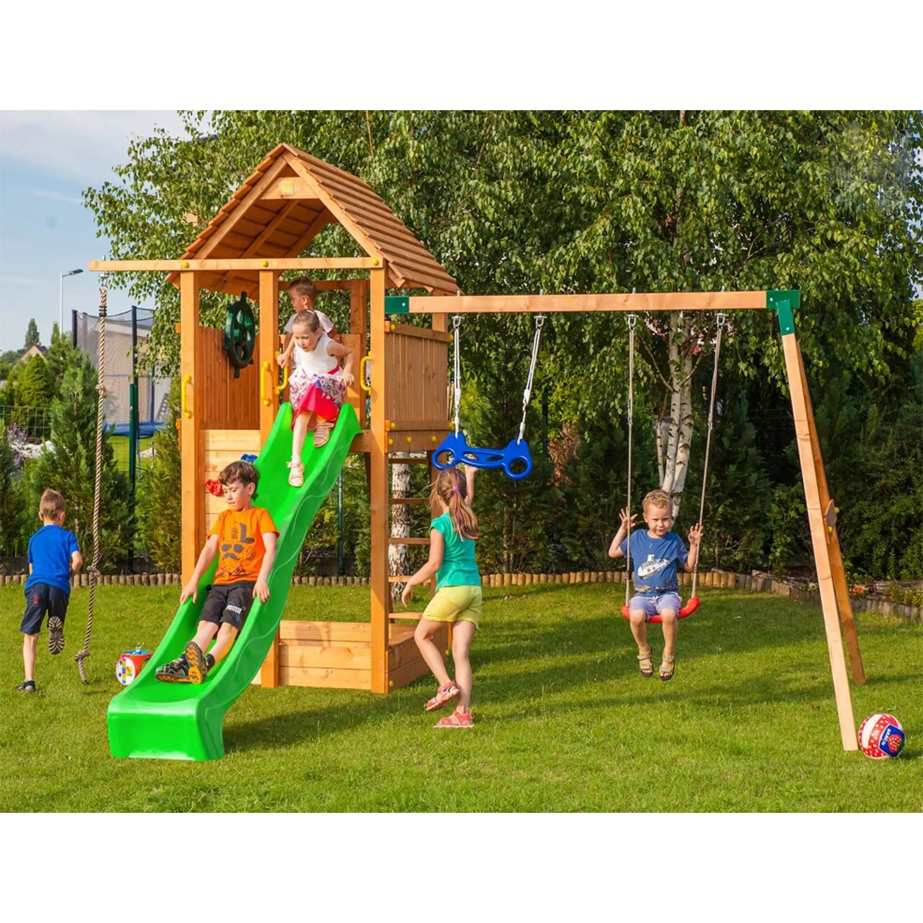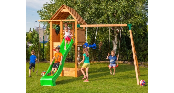 Doprajte svojim deťom o zábavu navyše. Kúpte k detskému ihrisku hojdačku, ktorá je kompatibilná so všetkými vežami a domčekmi Marimex Play. V základnej sade je červené, modré