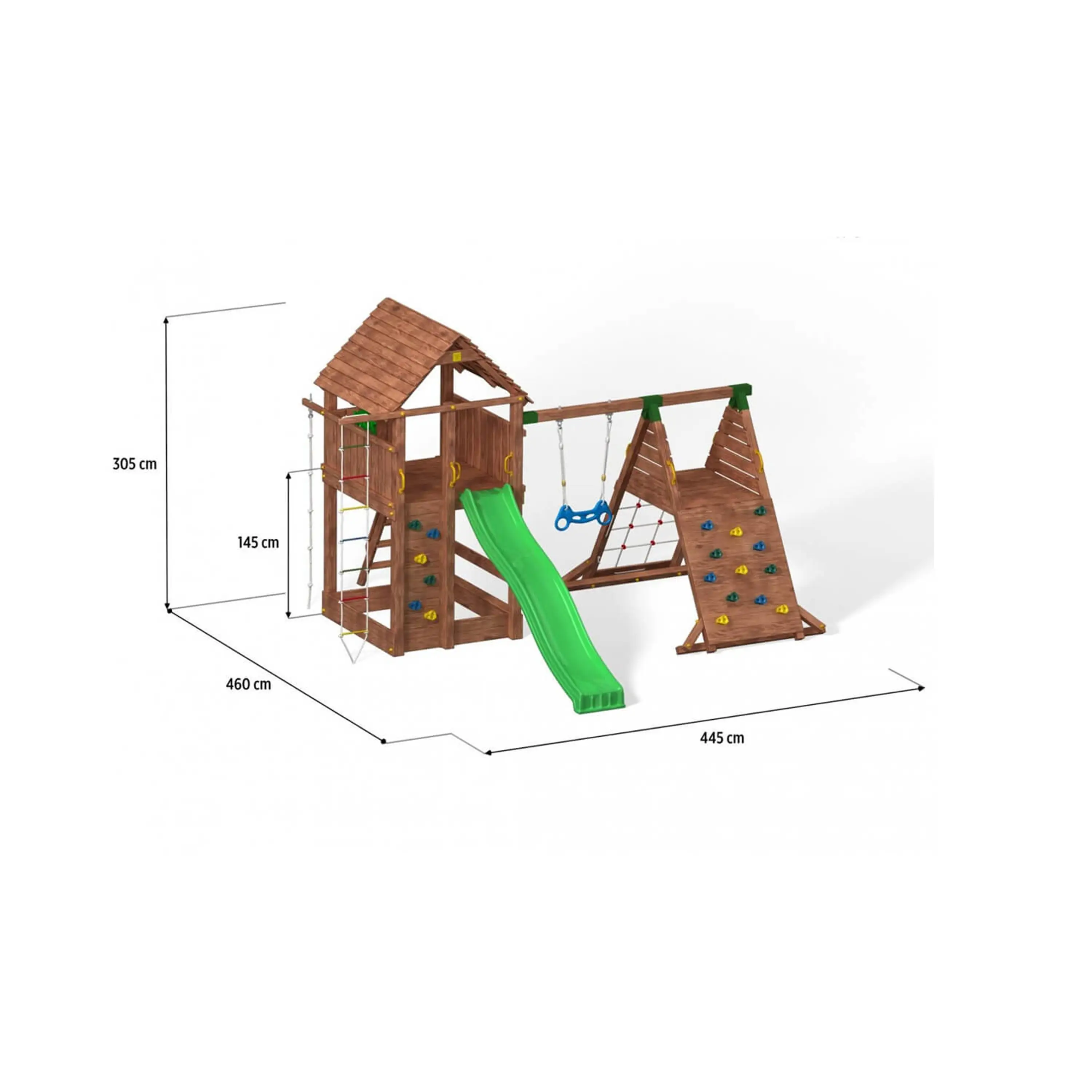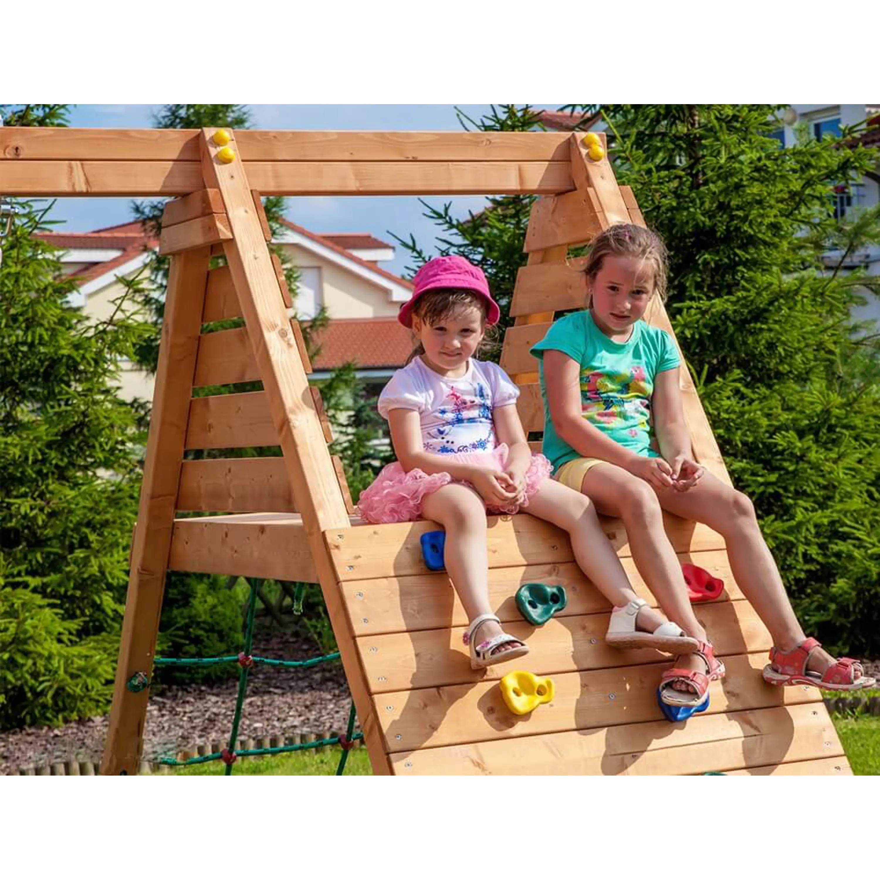 Kvalitné materiályVšetky komponenty sú vyrobené z pevného plastu, odolného kovu a borovicového dreva, ktoré je ošetrené proti poveternostným vplyvom. |