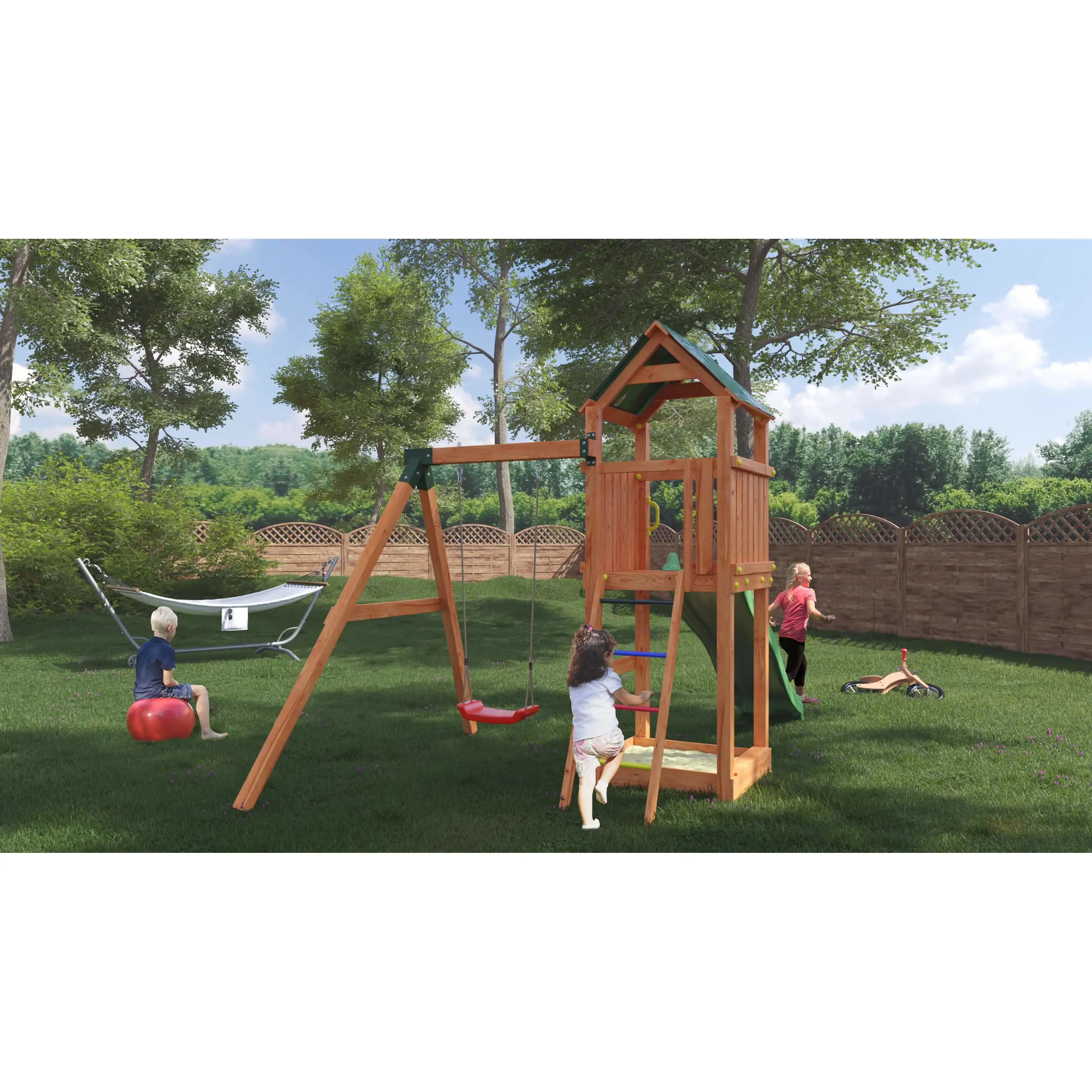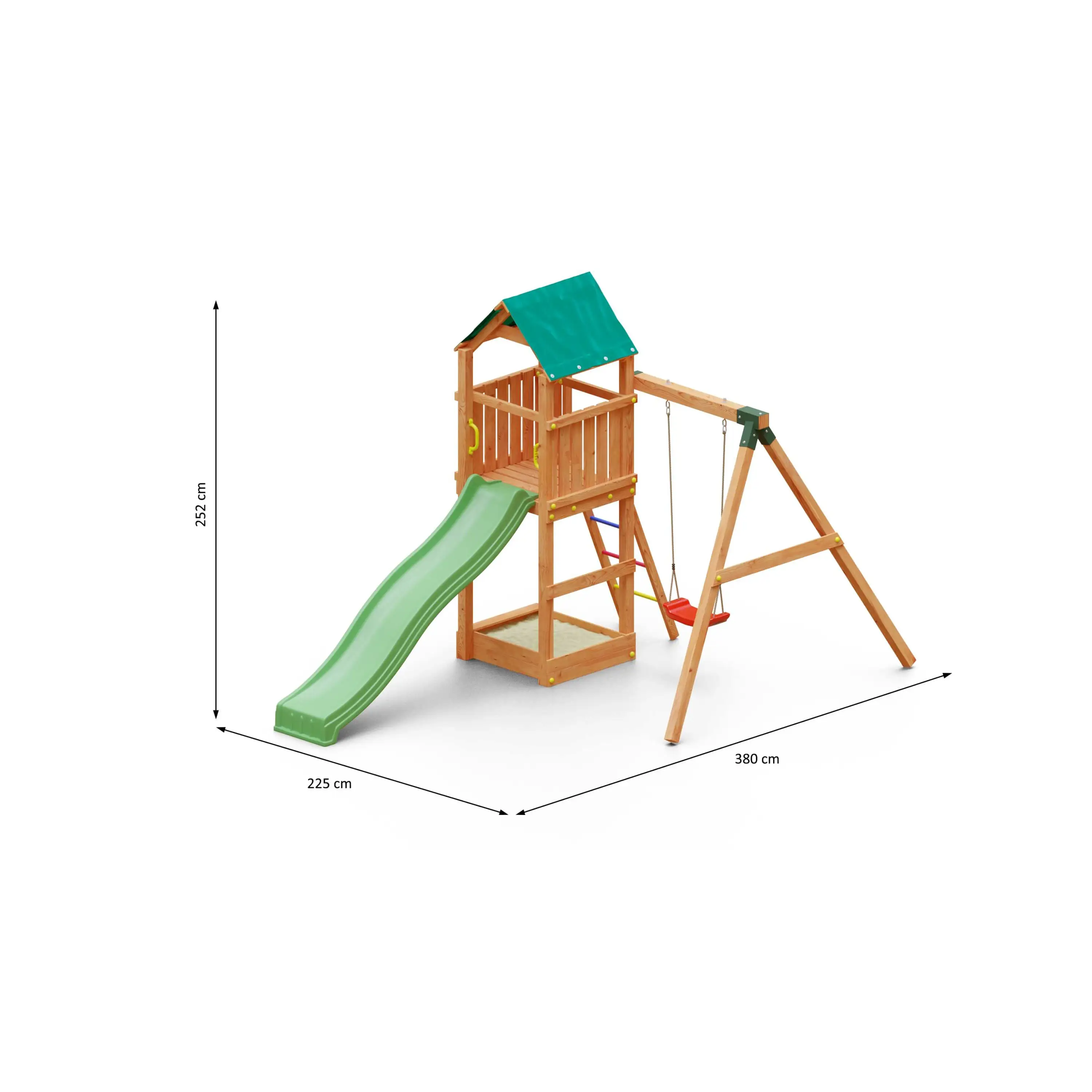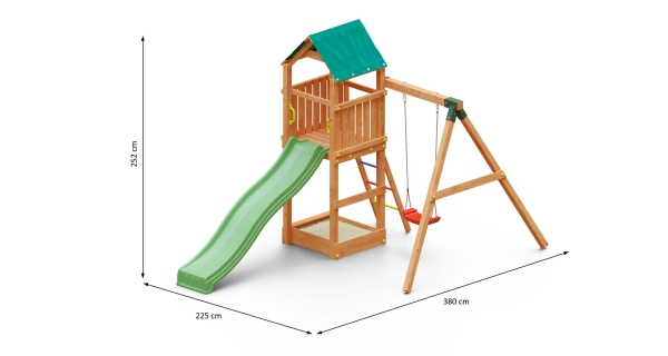 Kvalitné materiályVšetky komponenty sú vyrobené z robustného plastu, odolného kovu a borovicového dreva, ktoré je povrchovo ošetrené proti nepriaznivým vplyvom počasia. |