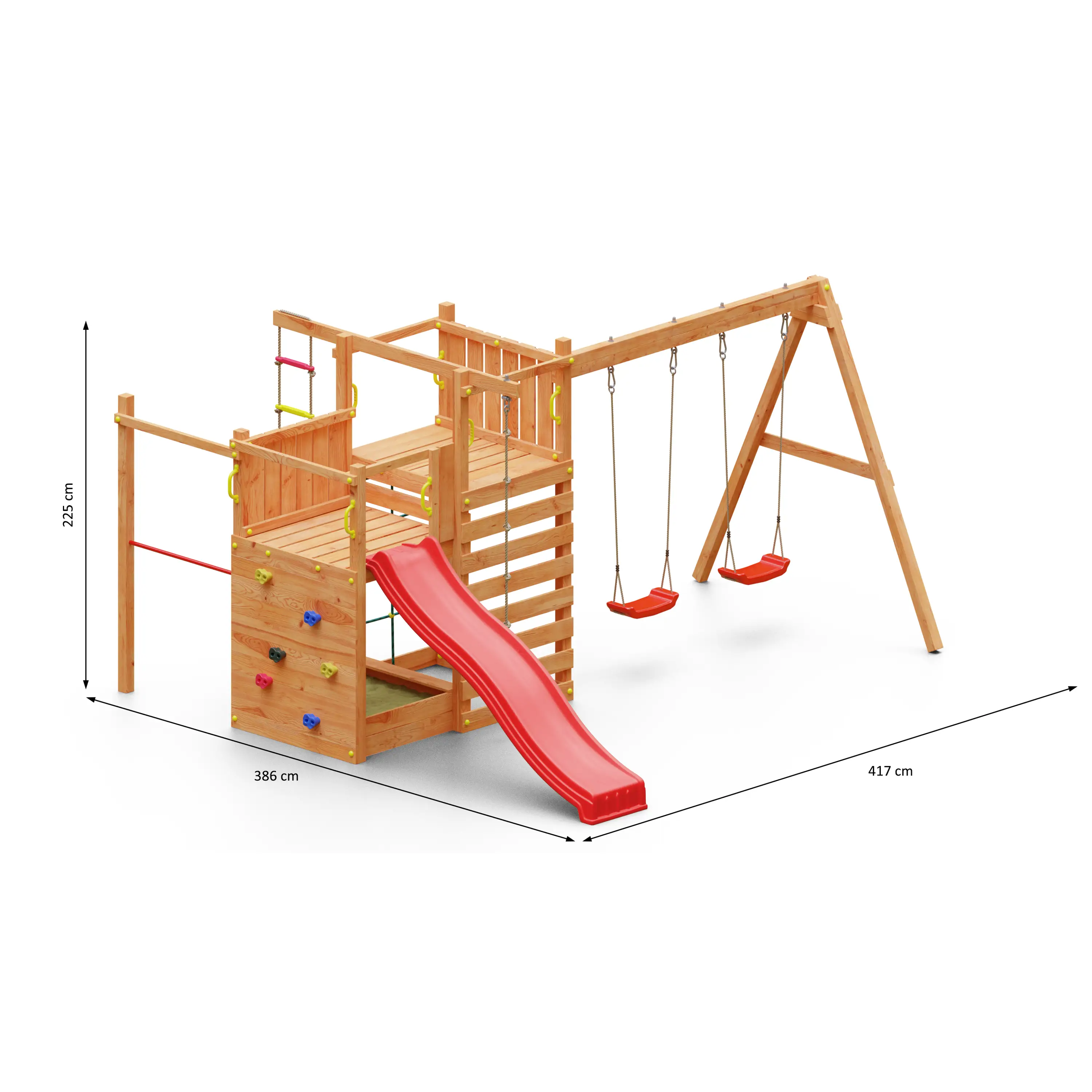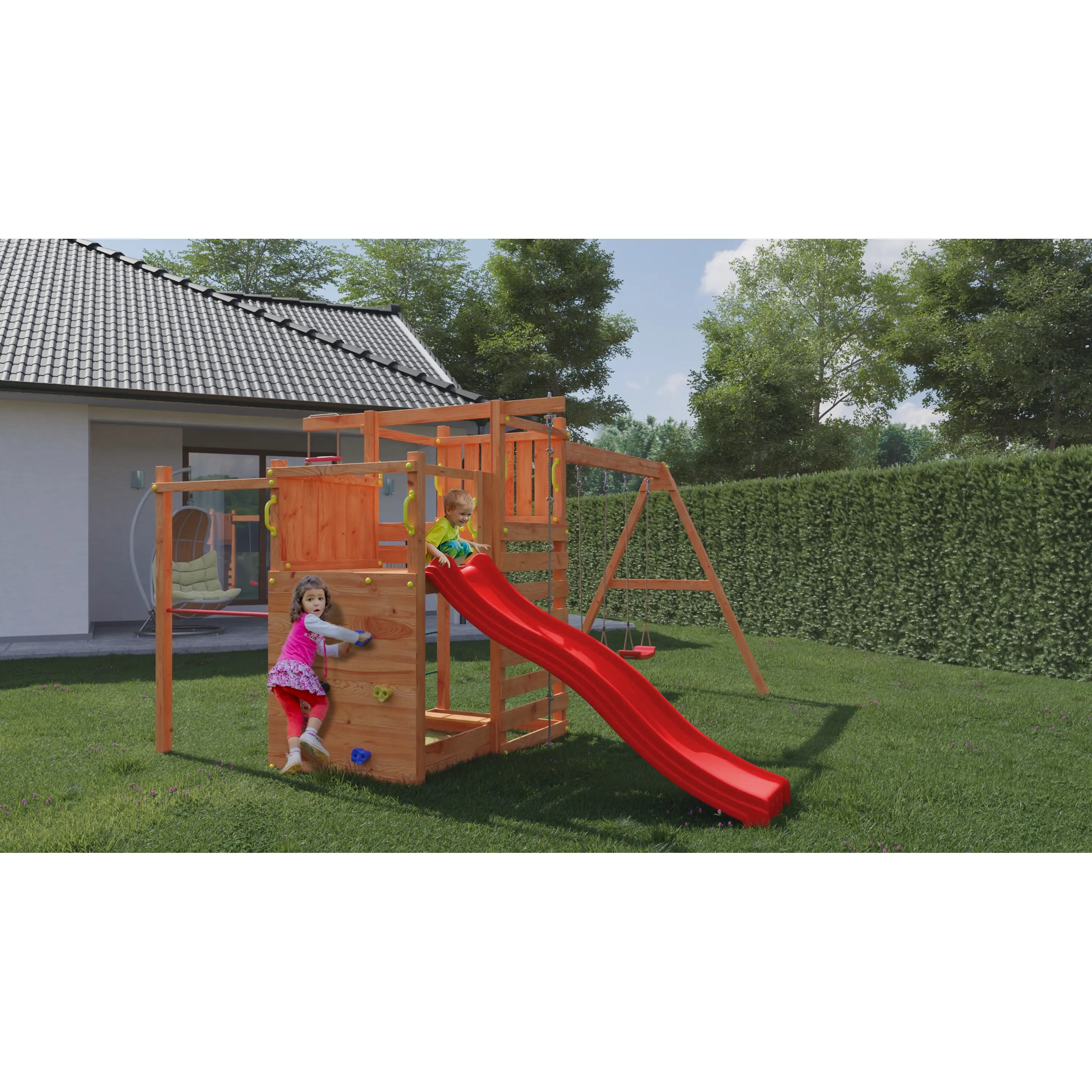 Kvalitné materiályVšetky komponenty sú vyrobené z pevného plastu, odolného kovu a borovicového dreva, ktoré je ošetrené proti poveternostným vplyvom. |