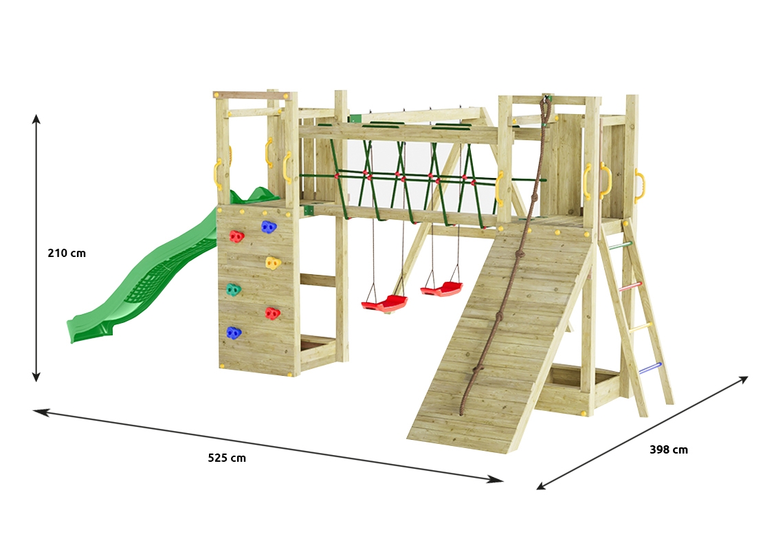 Kvalitné materiályVšetky komponenty sú vyrobené z robustného plastu, odolného kovu a borovicového dreva, ktoré je povrchovo ošetrené proti nepriaznivým vplyvom počasia. |