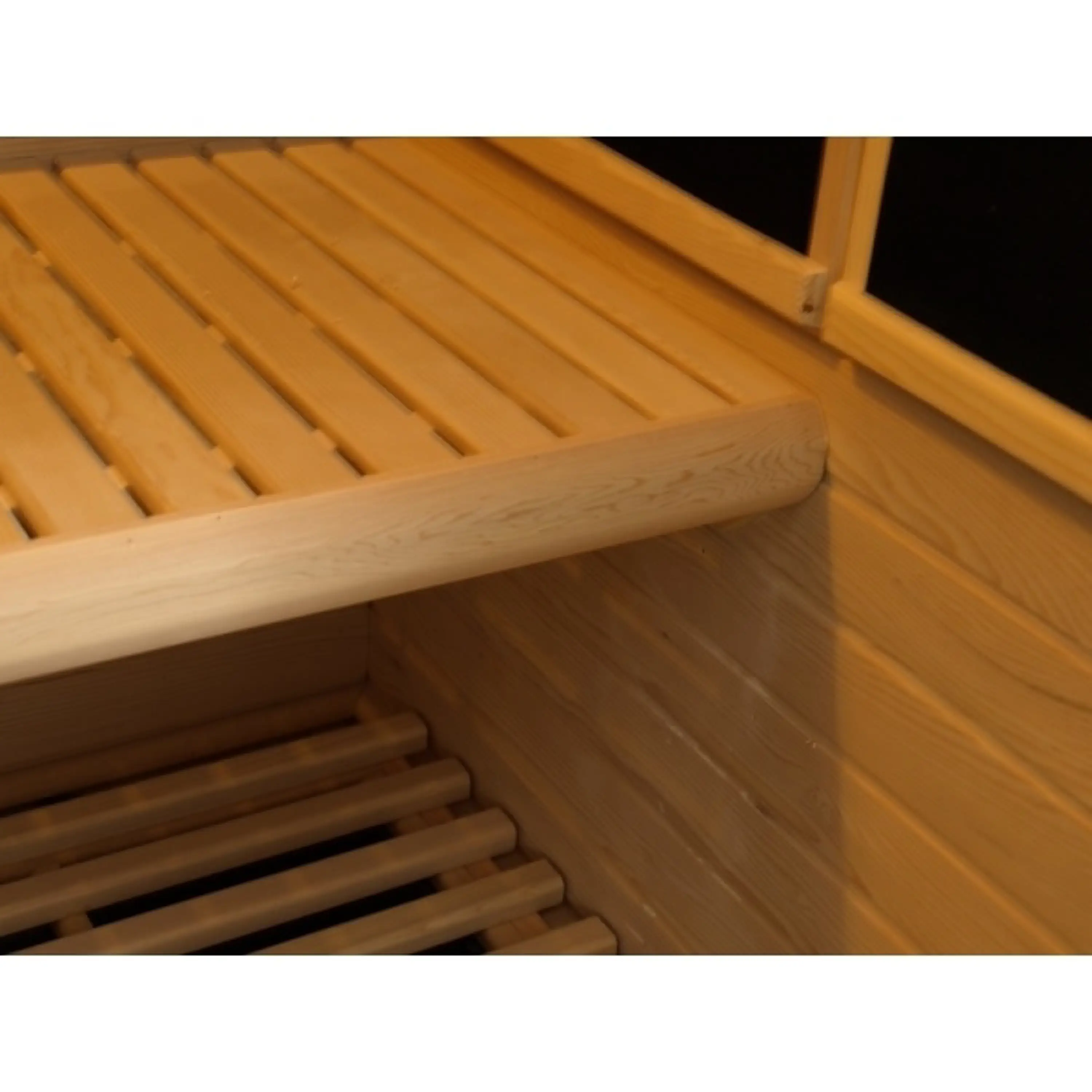Infrasauna vhodná pre 1 osobu. Zaujme doplnkom vnútorných priestorov s výhľadom do okolia. Infrasauna je vyrobená z kvalitného dreva kanadského jedlovce. Výhodou sú karbonové žiariče, ktorá sú výkonnejšie a infrasaunu rýchlejšie vyhrejú. Montáž zaberie 35 min. Vlnová dĺžka infražiaričov: 6 - 16 micrometrov. Spĺňa najprísnejšie smernice EÚ.