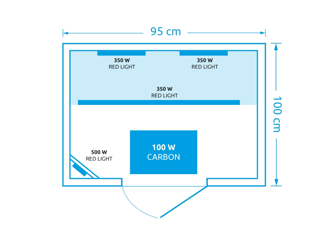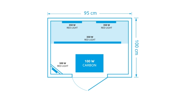 V infrasaune je rozmiestnený 1 karbónový žiarič a 4 redlight/magnézium žiariče.