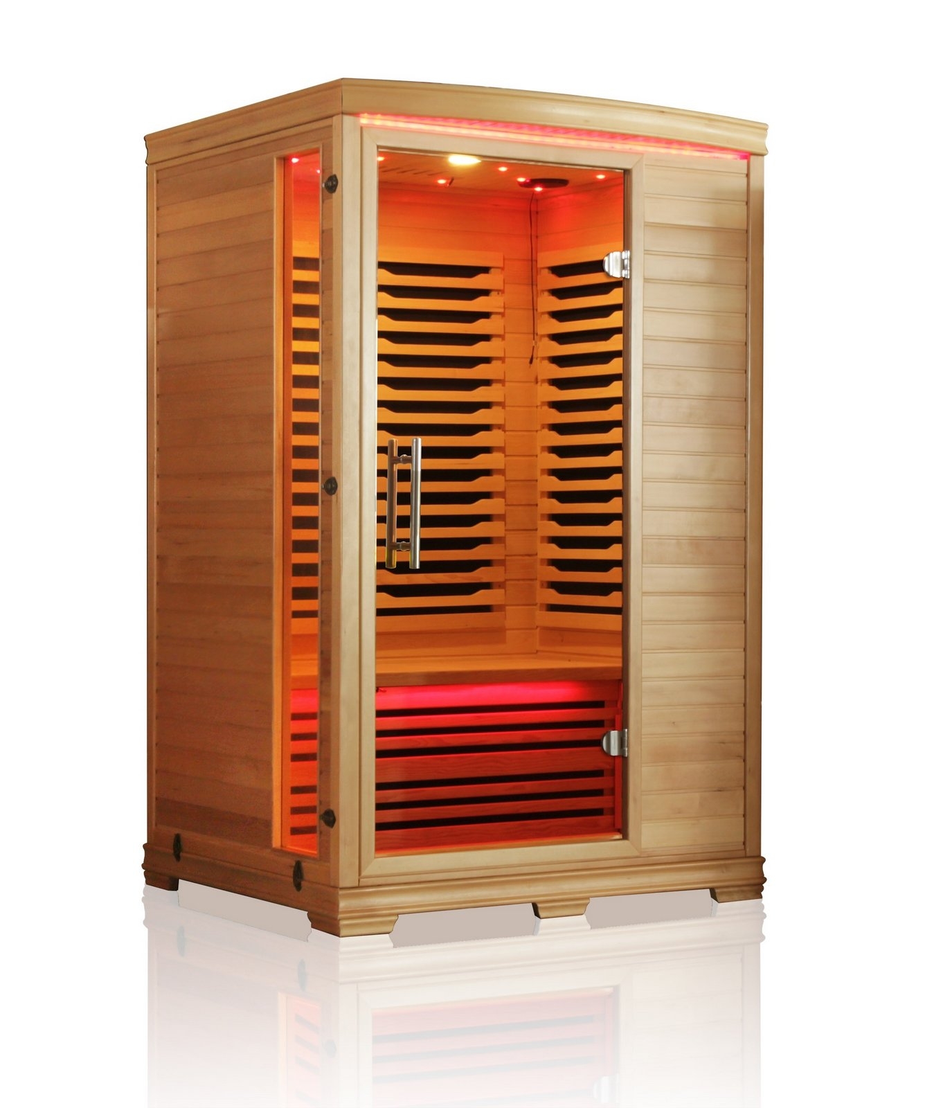 šesť karbónových žiaričov. V porovnaní s inými typmi karbónové žiariče tvoria tenké pásy, ktoré vyvinú povrchovú teplotu 70 - 170 stupňov Celzia. Karbónové žiariče dosiahnu maximálne teploty pomalšie, naproti tomu majú dlhšiu životnosť (pri saunovaní 3x týždenne cca 90 rokov). Tento typ žiaričov prehreje ľudské telo rovnomerne a do hĺbky.