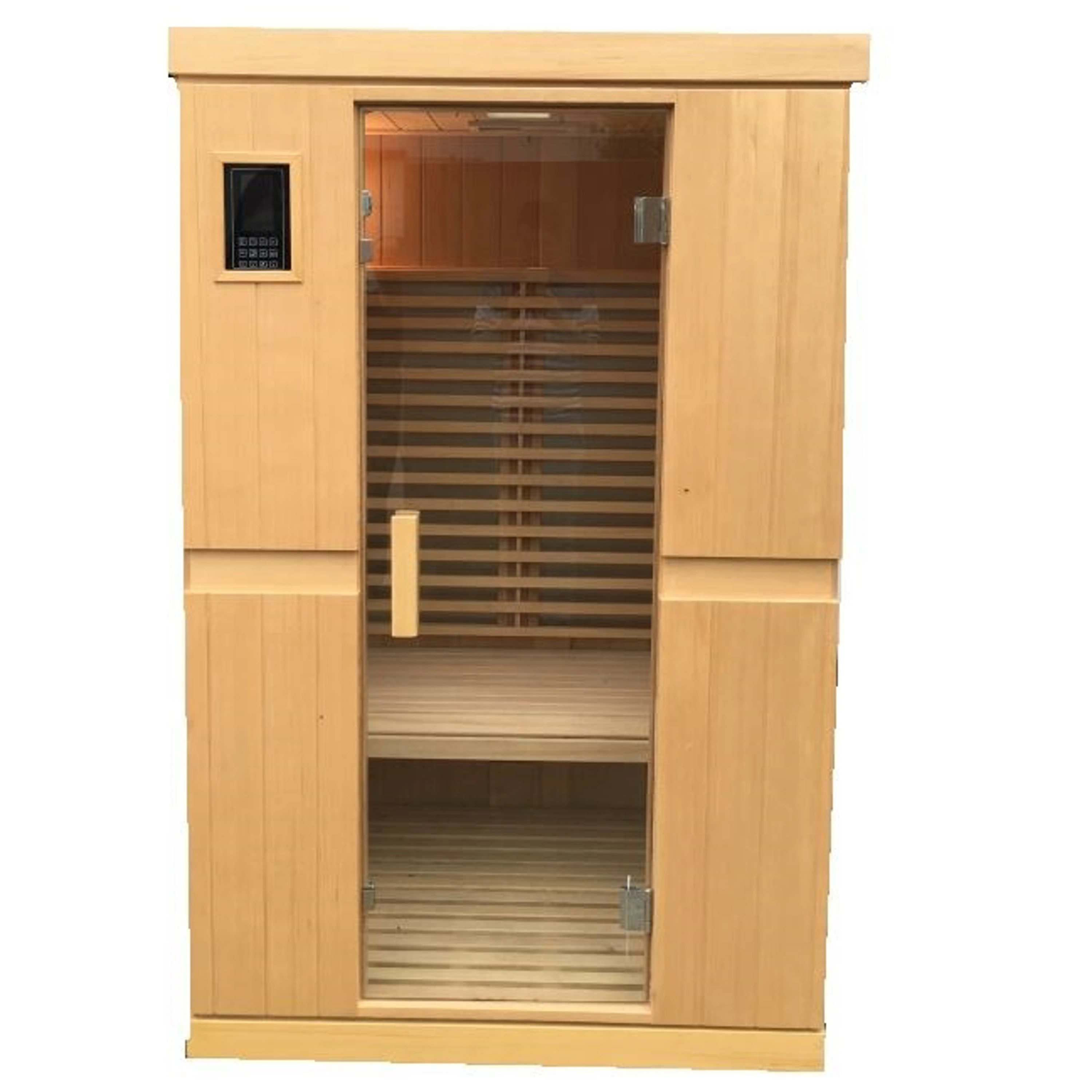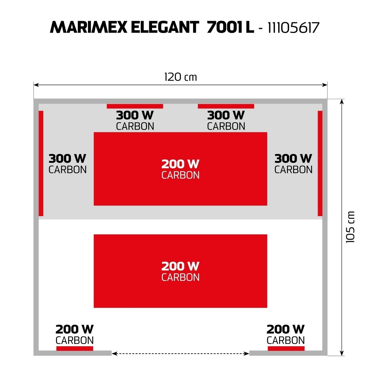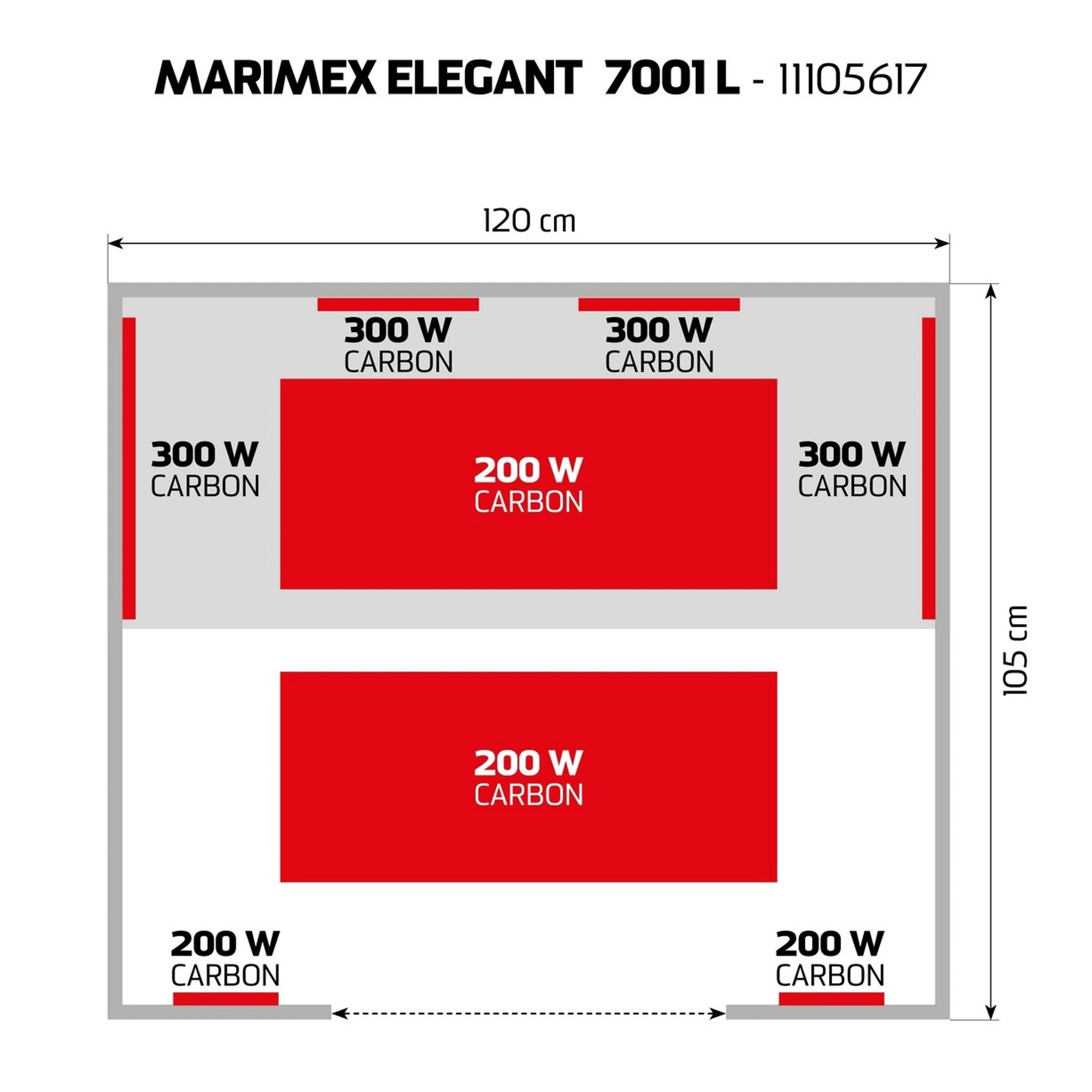 osem karbónových žiaričov. V porovnaní s inými typmi karbónové žiariče tvoria tenké pásy, ktoré vyvinú povrchovú teplotu 70 - 170 stupňov Celzia. Karbónové žiariče dosiahnu maximálnu teplotu pomalšie, naproti tomu majú dlhšiu životnosť (pri saunovaní 3x týždenne cca 90 rokov). Tento typ žiaričov prehreje ľudské telo rovnomerne a do hĺbky.