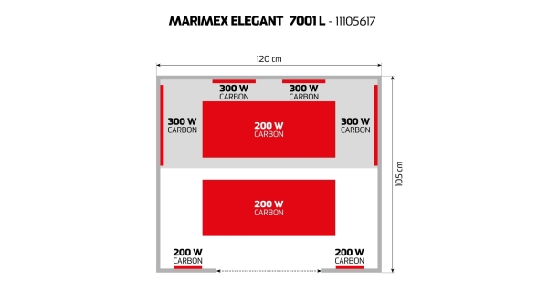 Infrasauna Marimex Elegant 7001 L sa vďaka svojmu dizajnu hodí do každého interiéru. Pri výrobe bolo použité kvalitného dreva kanadského jedlovca - hemlock. Infrasauna Marimex Elegant 7001 L umožňuje vychutnať čaro saunovanie spoločne dvom osobám. Kompaktné rozmery dovoľujú infrasaunu umiestniť v rodinnom dome i priestornejším byte. Sklenené dvere umožňujú pohodlný výhľad po okolí sauny. Nad vstupnými dverami je dekoratívne LED osvetlenie. Súčasťou výbavy infrasauny je ionizér a rádio s mp3 prehrávačom a funkciou bluetooth. Táto infrasauna obsahuje
