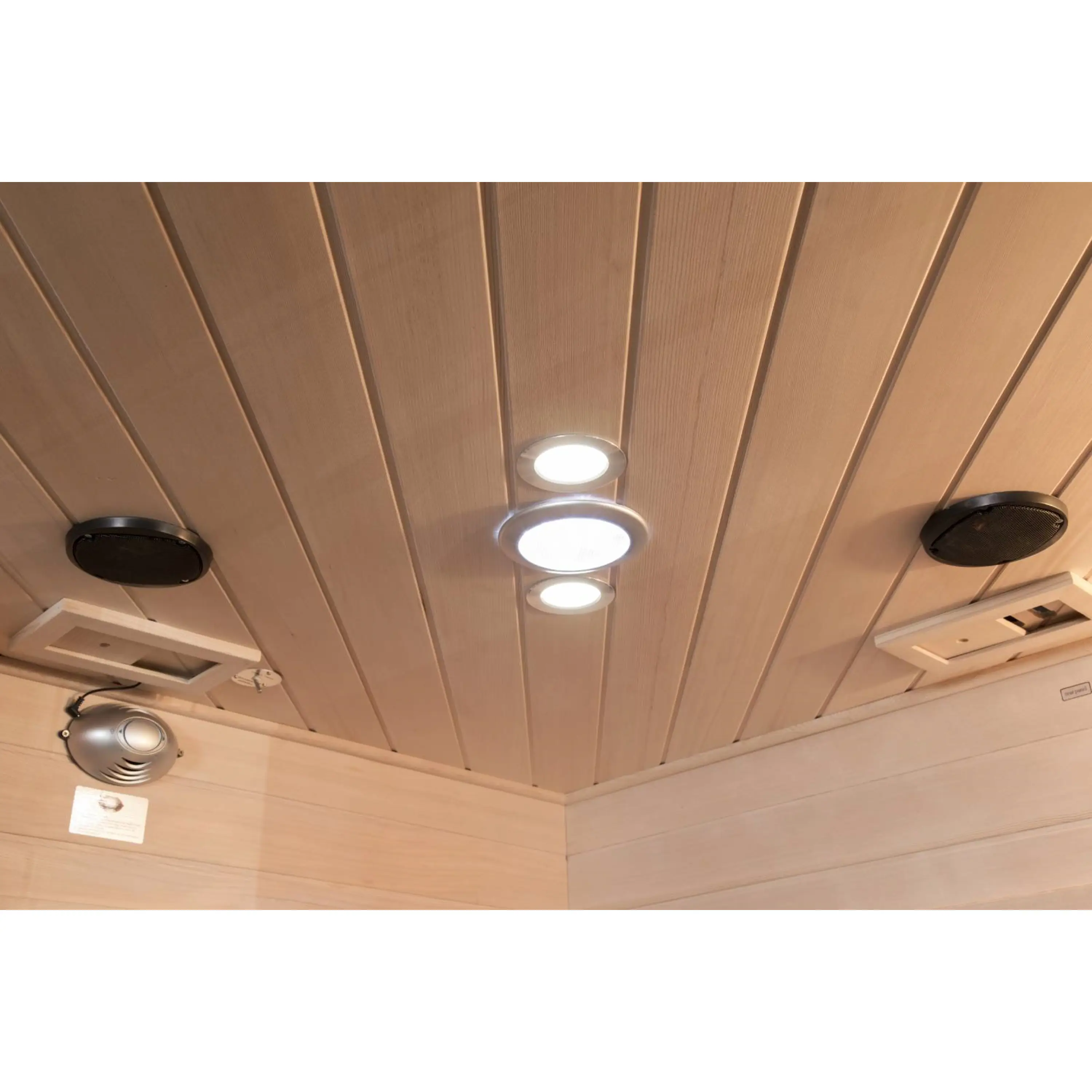 Infrasauna je tiež vybavená zabudovaným LED osvetlením, ktorého farbu si môžete vybrať a kombinovať so svetelnou terapiou. Môžete tiež použiť halogénové svetlo umiestnené pri vstupe. Medzi ďalšie výhody patrí rádio, teplotný senzor, strešné vetranie a ionizátor. Ten znižuje obsah mikroorganizmov vo vzduchu a tým pozitívne vplýva na ľudské zdravie. Infrasaunu Marimex FAMILY 2001 XXL vyhrieva 11 karbónových žiaričov, ktoré sú umiestnené v stenách, lavici a podlahe. Príjemne zahrejú telo a ľuďom, ktorí sa sťažujú na studené končatiny, dokonale zahrejú aj nohy.