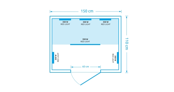 V infrasaune je rozmiestnených 6 redlight žiaričov. Redlight žiarič pracujú s povrchovou teplotou 250 až 300 stupňov Celzia. V porovnaní s karbónovými sa redlight žiariče zahrejú veľmi rýchlo. Nevýhodou môže byť vyššia spotreba, ale vždy záleží na type infrasauny. Obstarávacie náklady tohto typu žiaričov sú nižšie, životnosť je cca 8 000 hodín. Pri bežnom saunovaní (3x týždenne 45 min) vydrží cca 60 rokov. Redlight ohrievače dosahujú takmer okamžite požadovanú teplotu. Sú tvorené trubicami z kremičitého skla, ktoré okrem intenzívneho sálavého tepla vyžarujú aj svetlo umocňujúce ich blahodarné terapeutické účinky. Vyžarujú teplo na krátkych vlnových dĺžkach.